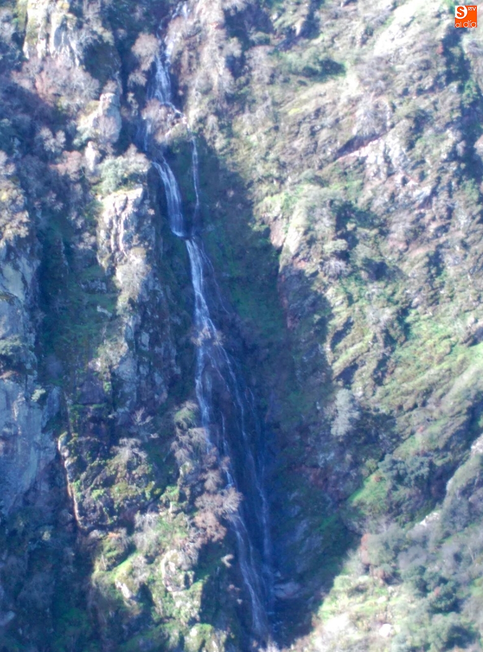 Este pareje emblemático recupera su esplendor con las lluvias, y ante la cercanía de la primavera que ya anuncian los almendros. Así, pues cientos de personas se trasladaban este domingo hasta este emblemática paraje del río Uces, entre Masueco y Pereña de la Ribera, para ver la espectacular cascada de más de 60 metros de altura.