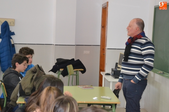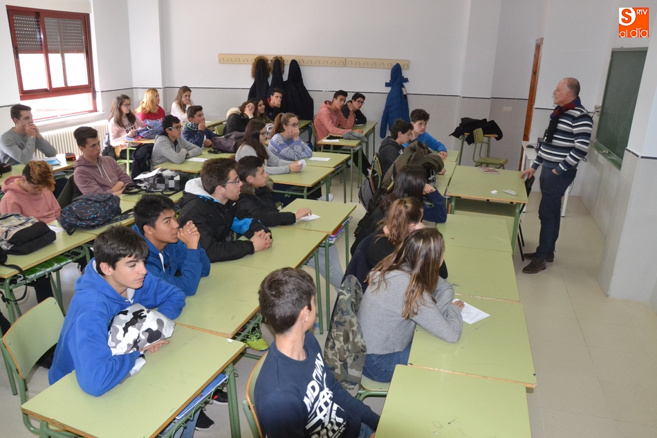 Alumnos de 4º de la ESO del IES Tierra de Ciudad Rodrigo cerraron la mañana del martes asistiendo a una charla de Juanjo Herráez Pindado, quién les relató su experiencia como voluntario de la ONG burgalesa Amycos durante el pasado verano en Bolivia.