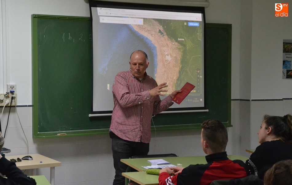 En la mañana del miércoles finalizó con un grupo de 4º de la ESO el ciclo de charlas que ha impartido Juanjo Herráez Pindado en el IES Tierra de Ciudad Rodrigo para dar a conocer entre los alumnos de cursos superiores su experiencia como voluntario en Bolivia.