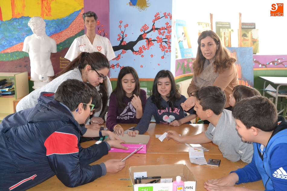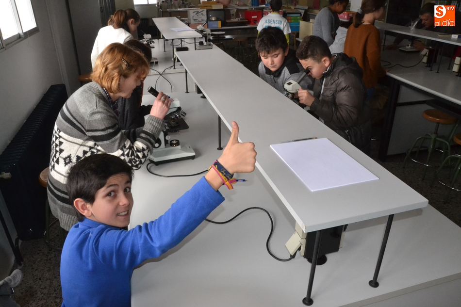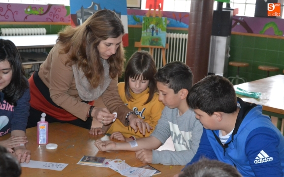 Como en días anteriores, los alumnos fueron repartidos en varios grupos para ir conociendo las dependencias de cada centro, teniendo la oportunidad de realizar alguna que otra actividad, como echar un vistazo por los microscopios o, lo más llamativo, hacerse un tatuaje de recuerdo (al menos les durará unos días) en el Aula de Plástica del IES Fray Diego Tadeo.