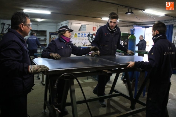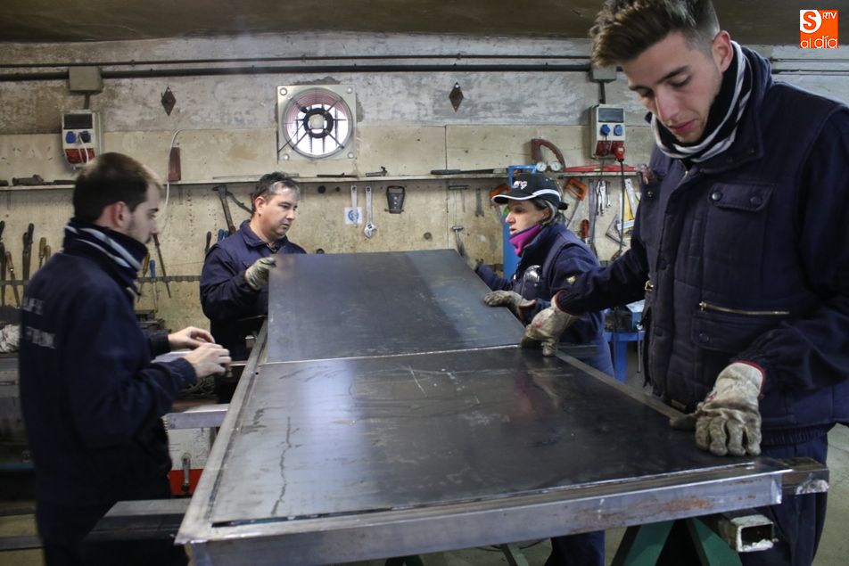 Debido a la mala climatología, los alumnos trabajan en los talleres y pronto iniciarán la colocación de sus trabajos en los diferentes puntos de la localidad. Cuando finalice el programa, los alumnos habrán adquirido cualificación y competencias profesionales suficientes para poder optar a un trabajo dentro de la la familia profesional de la Fabricación Mecánica.