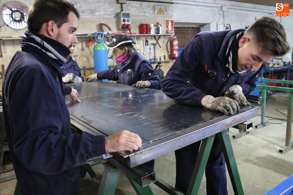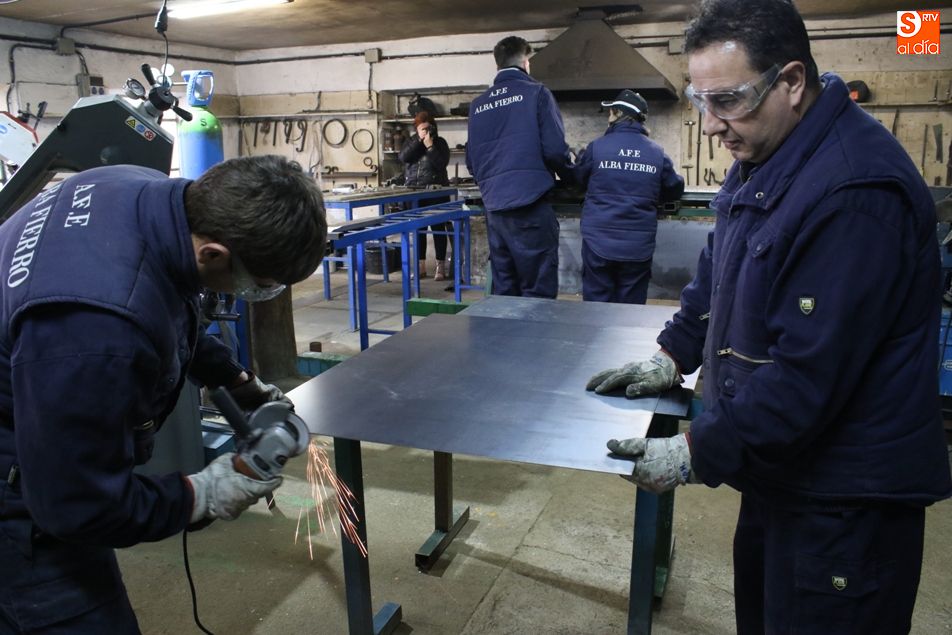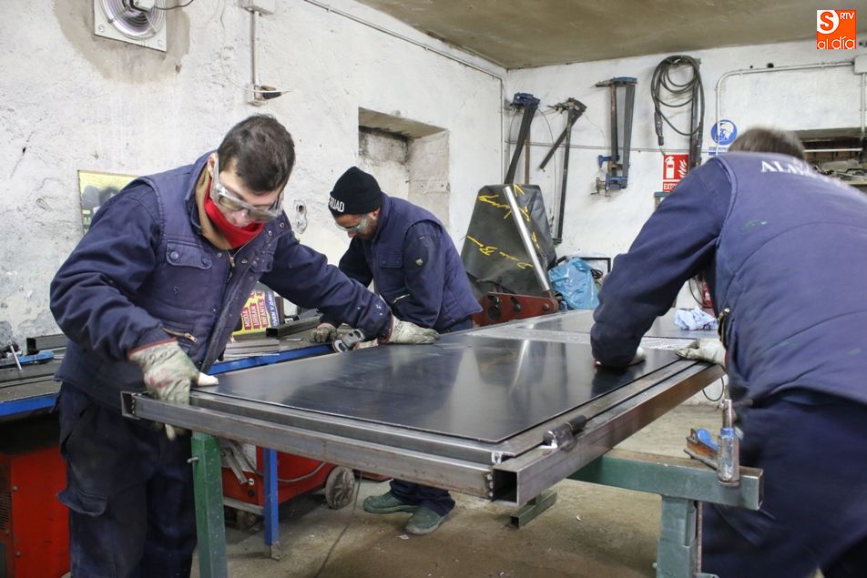 Ocho alumnos, bajo la supervisión de un monitor y un coordinador, se forman desde el pasado mes de noviembre para obtener el Certificado de Fabricación Mecánica o lo que es lo mismo carpintería metálica, aluminio y hierro. Todos aprenden de cero y forman parte del programa de Acción de Formación y Empleo 'Alba Fierro', promovido por el Ayuntamiento de Alba de Tormes y financiado por la Junta de Castilla y León.