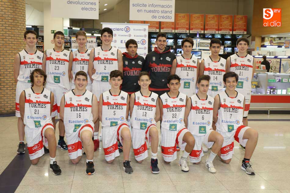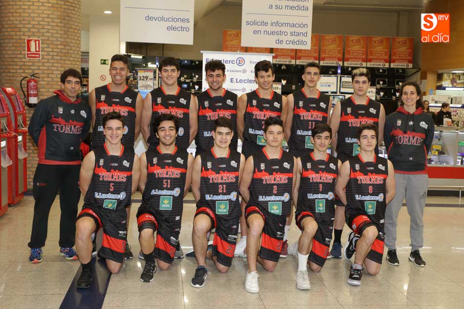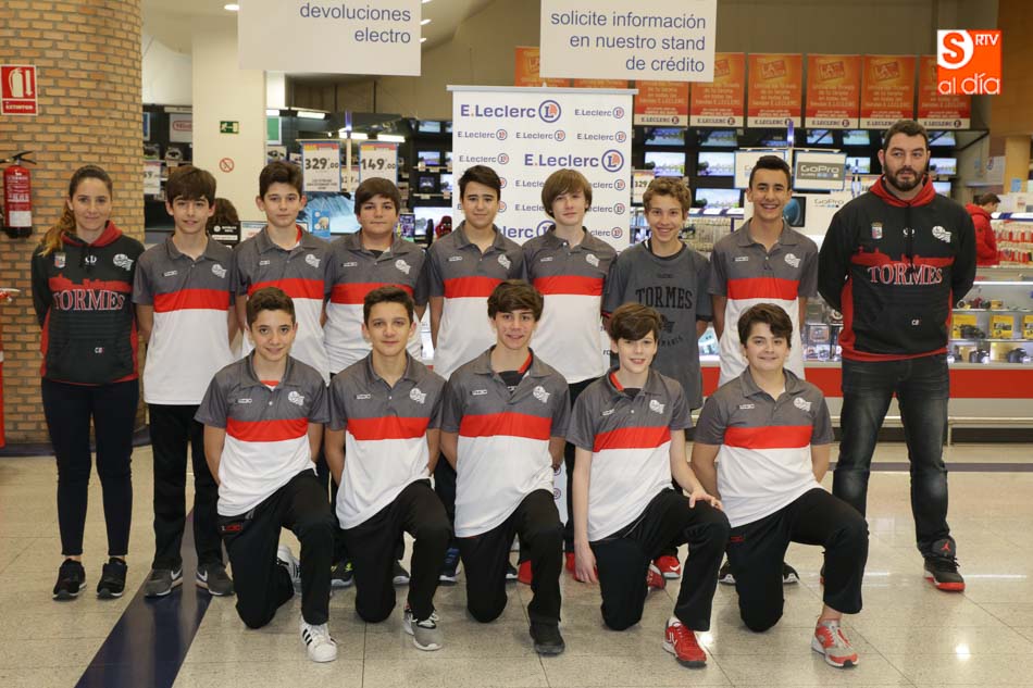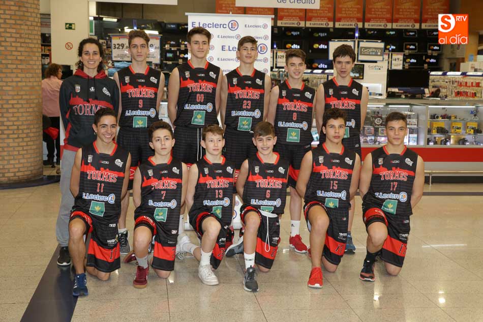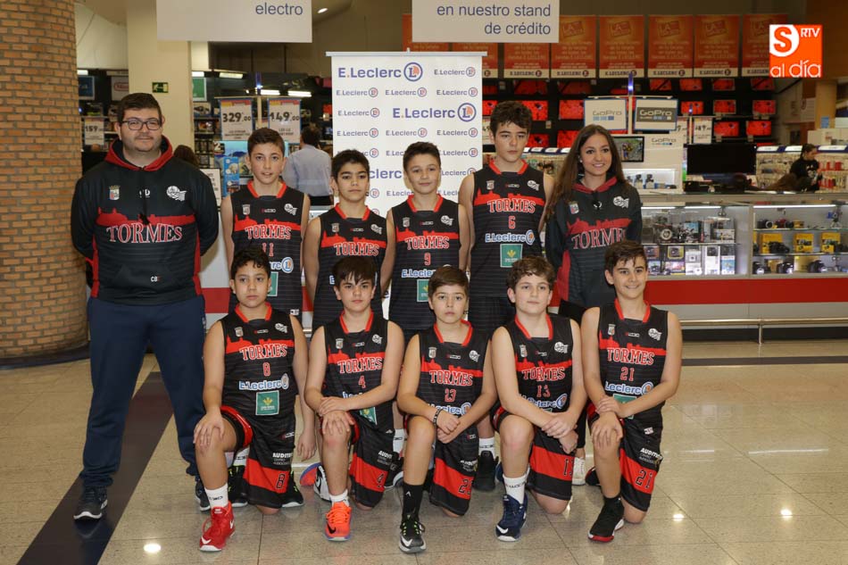 El CB Tormes se ponía de gala hace unos minutos en la galería comercial del Hipermercado E.Leclerc, con la presencia de los responsables del club y del gerente del centro. Unos sesenta jóvenes jugadores pertenecientes a las categorías júnior, cadete e infantil, se ponían de largo junto a sus entrenadores y ante el seguimientos de compañeros, familiares, colaboradores y clientes de la firma patrocinadora.
