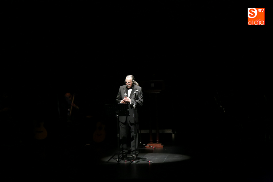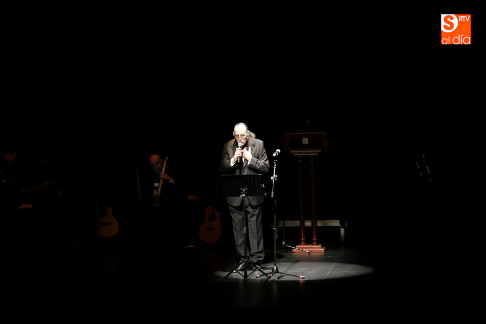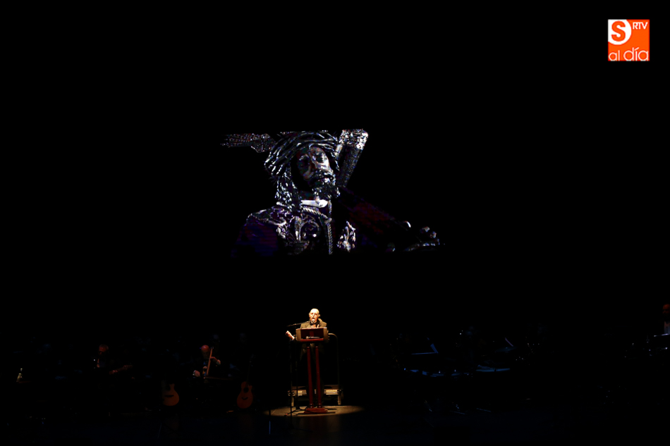 El autor quiere destacar la importancia a nivel mundial de la Semana Santa y lo hace a través de un proyecto cultural, literario y musical que gira por toda España y que este viernes hacía escala en Salamanca y donde con los Cantores de Híspalis ahondaba en la Semana Santa salmantina acompañado por los intérpretes Diego Benjumea y Álex Hernández, el compositor y arreglista Héctor Pérez Cala, y el quinteto coral gaditano La Caleta, además de la colaboración de la Banda de Música de Villamayor.