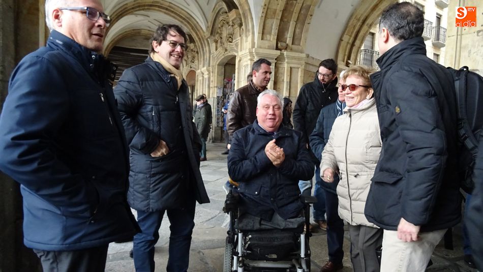 Junto a Juan José Aliste, presidente de la Asociación Víctimas del Terrorismo, la concentración ha contado con la presencia del alcalde, Alfonso Fernández Mañueco, el presidente de la Diputación, Javier Iglesias, y el subdelegado del Gobierno, Antonio Andrés Laso, el secretario general de la Consejería de la Presidencia, José Manuel Herrero. y el rector de la Universidad, Ricardo Rivero. No han faltado tampoco representantes de todos los partidos políticos salmantinos, de los sindicatos y de distintas asociaciones que han mostrado con este acto su apoyo a las víctimas del terrorismo.