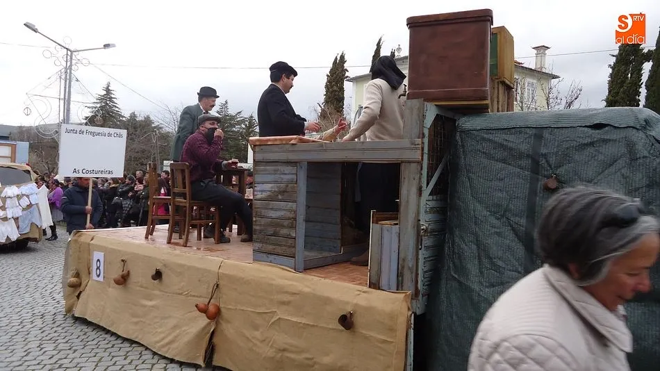 Forman parte de este popular y arraigado desfile etnográfico, asociaciones culturales y de vecinos, así como centros educativos de las catorce localidades que conforman el concejo. En esta edición, ha resultado ganadora la carroza ?La venta de la almendra en el Largo do Tablado?, de Vila Nova de Foz Côa, ocupando el segundo lugar la carroza denominada ?La Aldea?, del pueblo de Seixas y, compartiendo el tercer lugar, ?El Belén en Almendra? y ?Las lavanderas de Chãs?, del pueblo de Almendra y de Chãs, respectivamente.