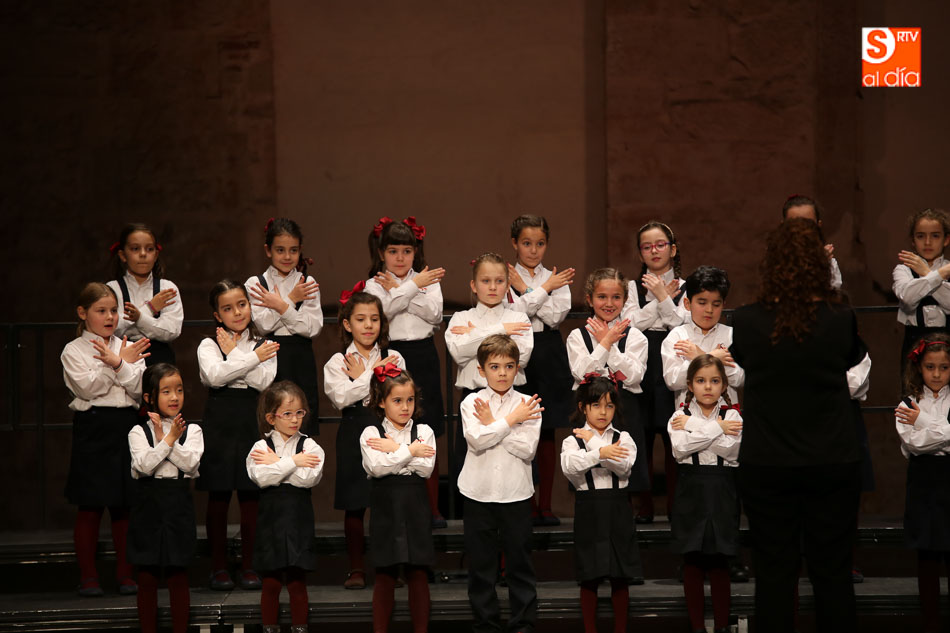 En el concierto han intervenido tres grupos: El Precoro; compuesto por niños de entre cinco y ocho años, el Coro de Niños; cuya edad oscila entre los ocho y los 16 años y el Coro Juvenil, constituido por jóvenes de entre 14 y 20 años. Estas tres agrupaciones, junto con la formación principal, han sumado un centenar de voces en el escenario.
