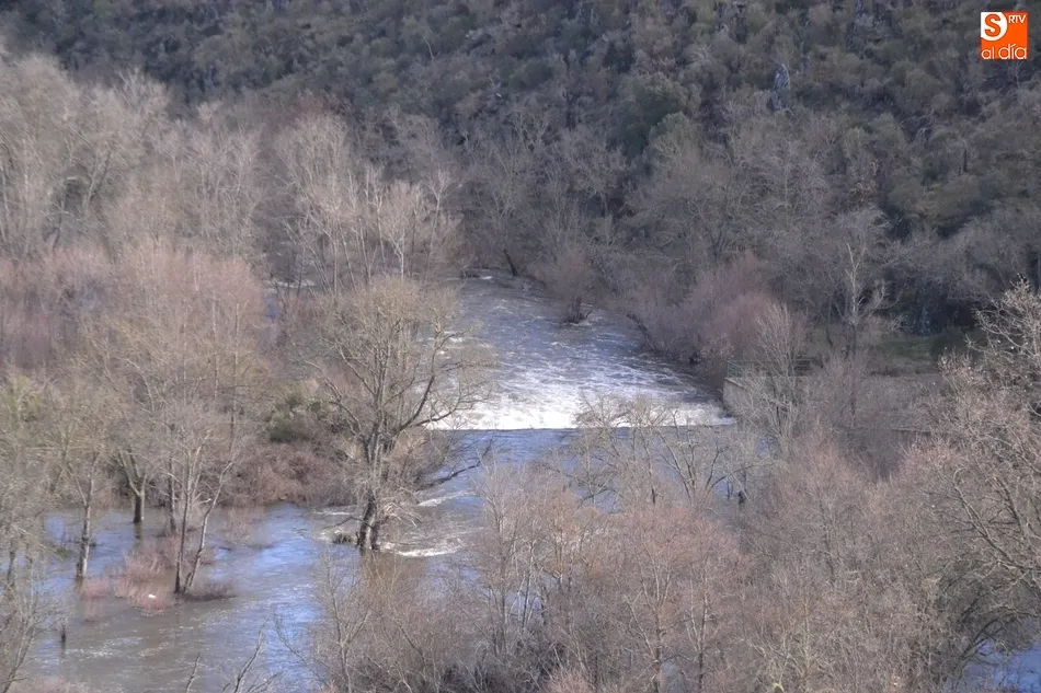 El río Águeda a su paso por Ciudad Rodrigo volvió a disparar su caudal en la noche del miércoles al jueves