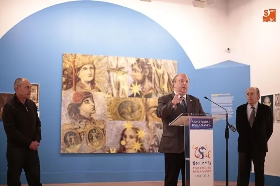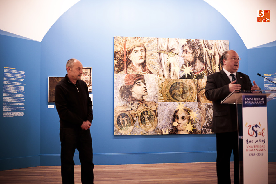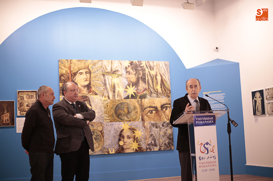 Hasta el próximo 13 de mayo se podrá contemplar en varias salas del Patio de Escuelas Menores la exposición ?El Cielo de Salamanca. Arte y astronomía en la bóveda de la antigua Biblioteca Universitaria?, una muestra que ofrece un atractivo recorrido iconográfico por la obra de Fernando Gallego que se ha ?convertido en un emblema de la Universidad y de la propia ciudad?, ha asegurado el vicerrector de Política Académica y Participación Social, Enrique Cabero, que ha participado en la inauguración junto al rector, Ricardo Rivero, y uno de los dos comisarios de la muestra, José María Martínez Frías.