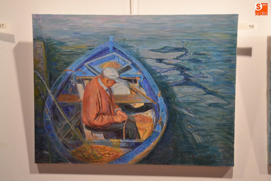 En la exposición abundan los cuadros realizados en la época más reciente de los 43 años que lleva dedicándose a la pintura, en los que su obra se ha podido ver en más de 70 exposiciones individuales (además de participar en numerosas colectivas).