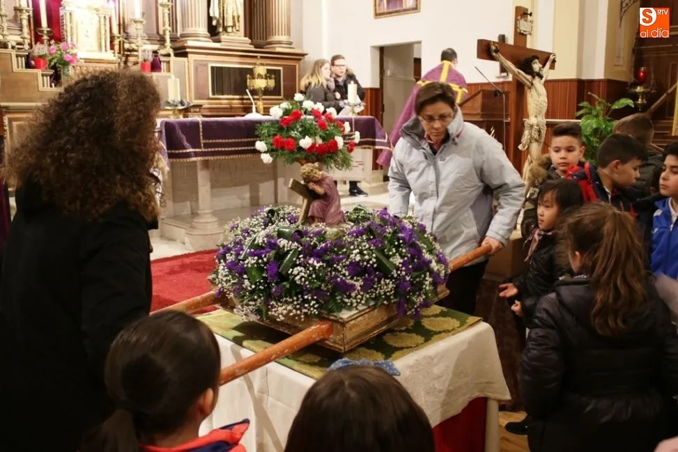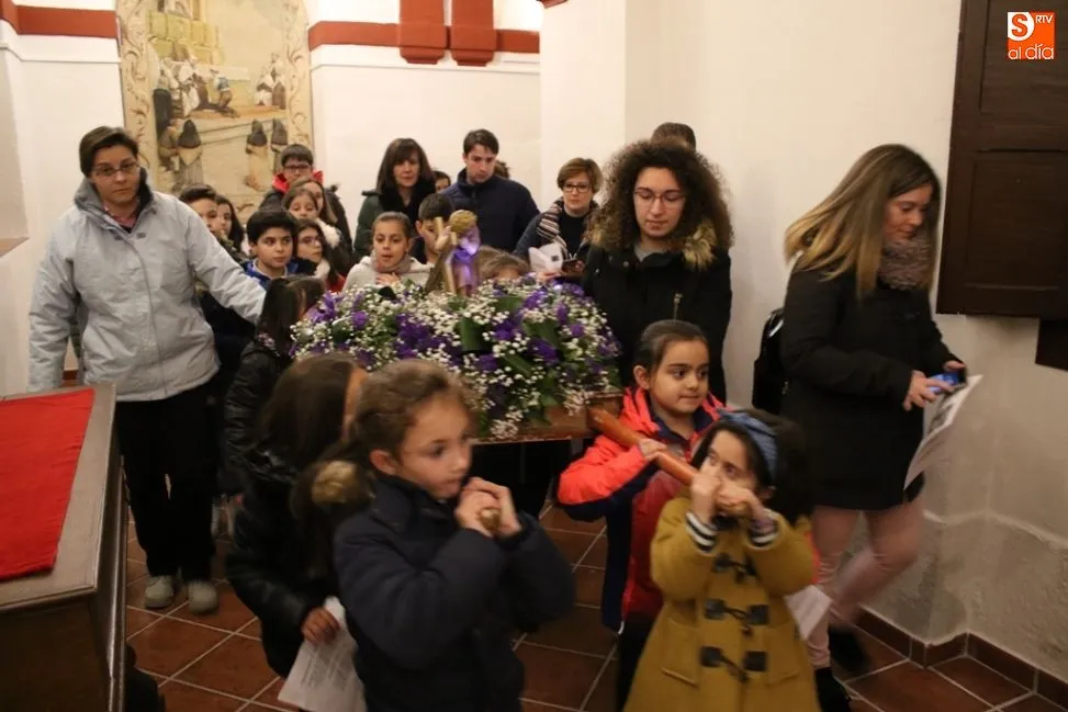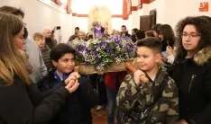 Al finalizar el viacrucis, todos los niños y niñas congregados en la iglesia, acompañados de sus familiares, portaron la imagen del Niño Jesús del Amor. La procesión recorrió el restaurado claustro de los carmelitas ante una gran expectación. Al finalizar, todos los niños recibieron un cucurucho de chuches, cortesía de los Carmelitas Descalzos.