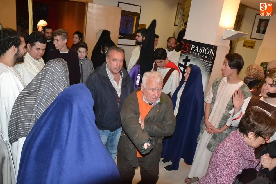 Los responsables de esta ?revolución? fueron los integrantes del Grupo de La Pasión, escogidos para ofrecer el pregón para conmemorar los 25 años que se cumplen en este 2018 de sus primeras representaciones, tal y como recordó en la presentación del acto la colaboradora de la Delegación Diocesana de Medios de Comunicación, Silvia García Rojo, quién tuvo palabras de ánimo para el capellán de la Cofradía de La Cruz, Celso Martín Santos, que ha sufrido un grave problema de salud en las últimas horas.