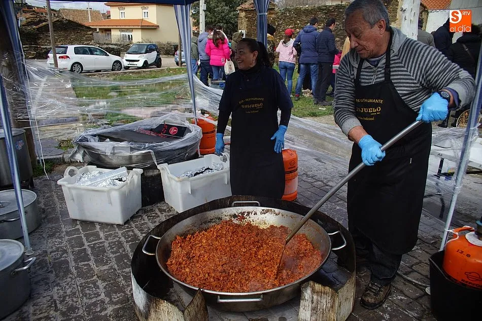 Al mismo tiempo, se fueron ofreciendo las diferentes degustaciones de la jornada, como jamón, torreznos, vino y dulces. Además, se cocinaron 300 raciones de comida matancera, con las tradicionales chichas como plato principal. Los comensales, entre los que se encontraba el alcalde, Miguel Alonso Rodríguez, acompañado de otros primeros ediles, como Eloy García de Montejo y Manuel Ramos de Berrocal de Salvatierra, compartieron mesa en la gran carpa, donde también se ofreció entretenimiento para los más pequeños y el sorteo de una paleta por la tarde.