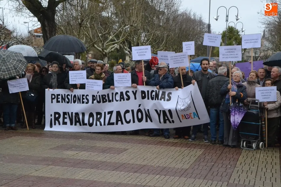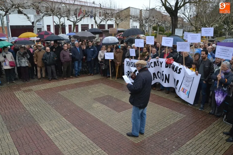 Ciudad Rodrigo se sumó en la mañana del sábado a la ola de movilizaciones convocadas por toda España durante esta jornada sabatina para exigir al Gobierno de España unas pensiones dignas. Pese al mal tiempo (estaba chispeando), unas 400 personas -según la estimación de la Policía Local- se dieron cita en torno al Monumento al Garrochista, respondiendo a la llamada del Centro Social Autogestionado Aldea, promotor de la concentración en Miróbriga.