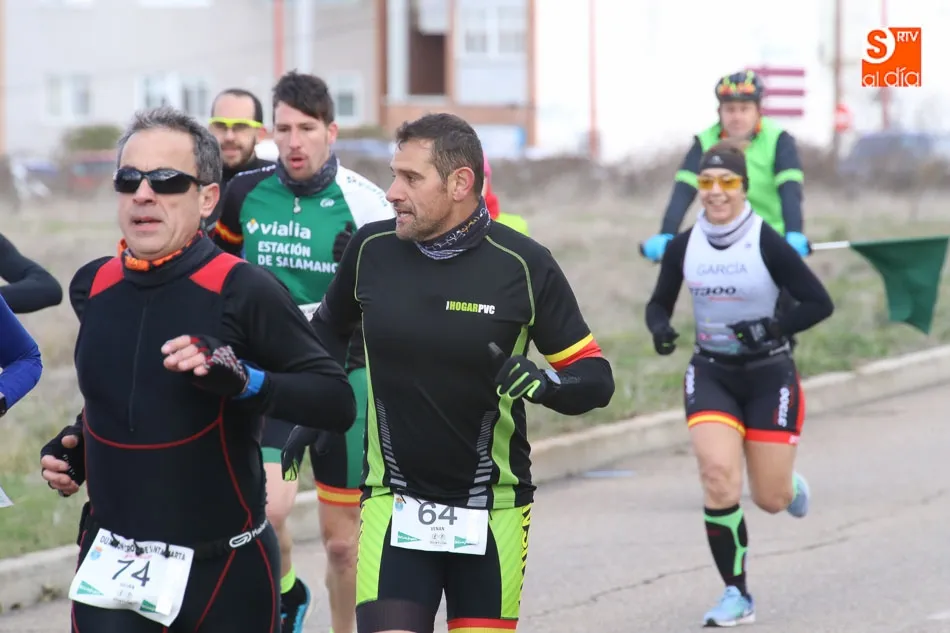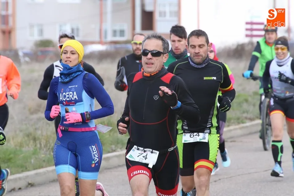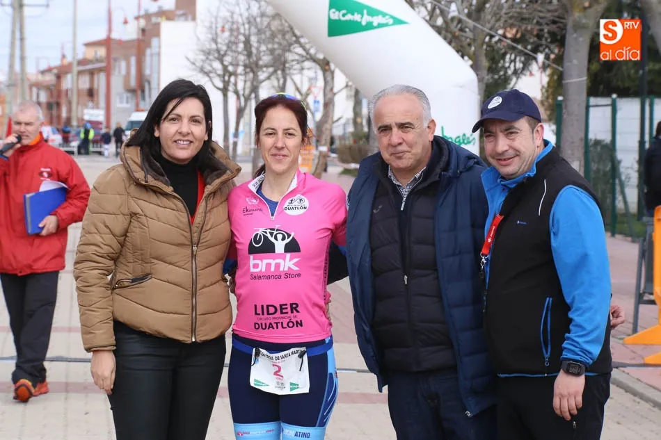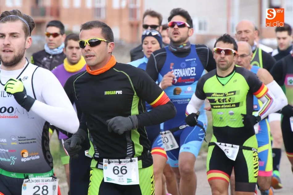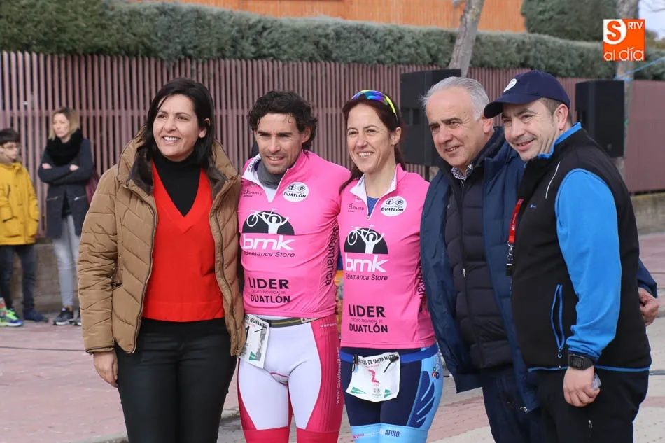 Carlos Rodríguez Esteban y Sonia Sánchez Díez se llevaban esta mañana la victoria en el Duatlón Cross de Santa Marta, que celebraba una nueva edición y que dejaba como líderes a la propia Sonia y a Antonio Cerezo, que terminaba en la segunda posición de la categoría masculina, mientras el incombustible Luis Alberto Casado entraba en la tercera posició. En féminas, Marta Rodríguez e Isabel Quevedo acompañaban a Sánchez en el podio.
