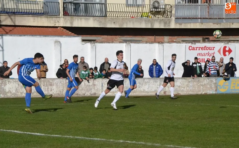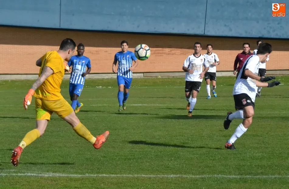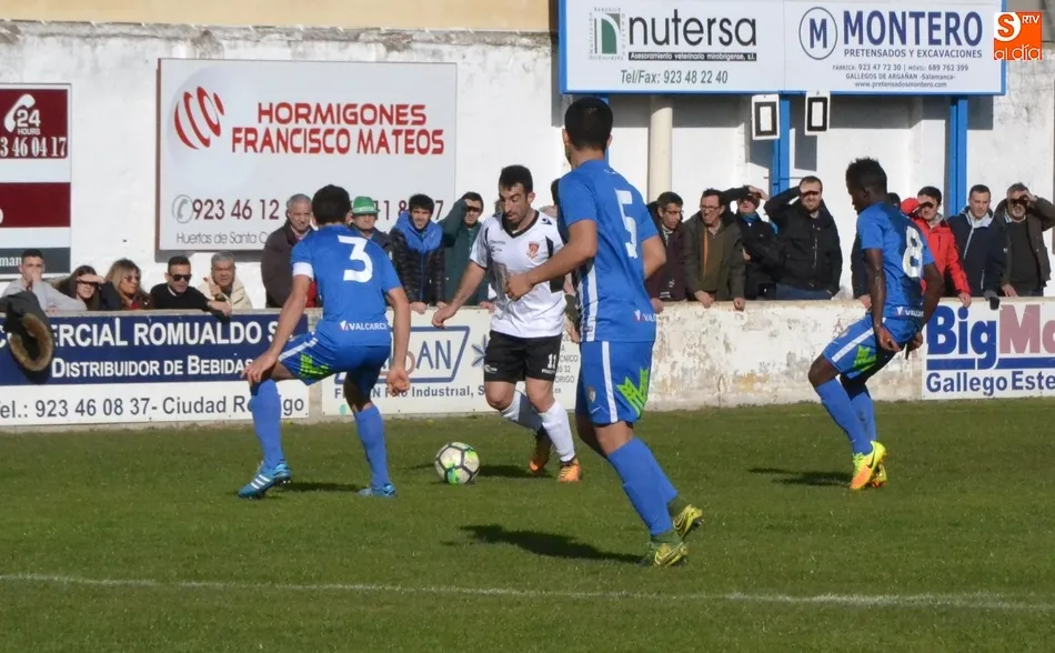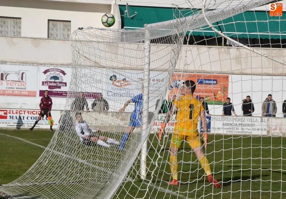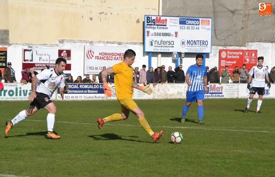 El gol hizo daño al Ciudad Rodrigo, entrando de este modo el partido en unos minutos menos atractivos, hasta que ya en el 40? Maza intentó rematar de chilena un centro de Gabri cogiendo el balón el portero. Parecía que el partido estaba condenado a irse al descanso con victoria visitante, pero justo en el último suspiro el Ciudad Rodrigo empató: Maza botó una falta por la banda izquierda que fue rematada por Javi Moríñigo de cabeza al fondo de la red.