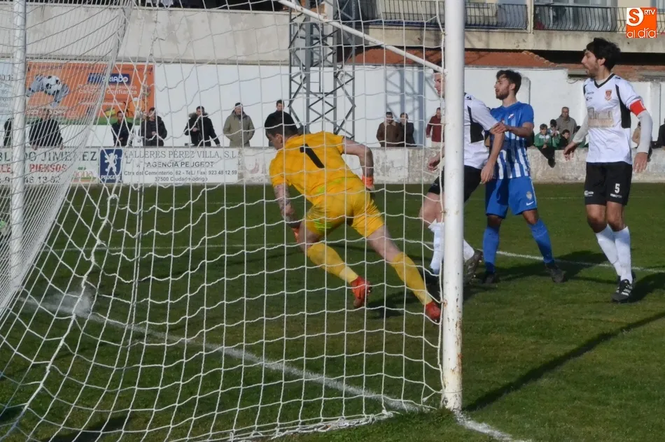 Apenas cuatro minutos después, el Ciudad Rodrigo ?que es cierto que tampoco creaba ocasiones claras, pero en su caso había menso prisa- puso tierra de por medio con una acción muy parecida al primer gol: Maza botó una falta desde la banda izquierda que Javi Moríñigo transformó en gol.