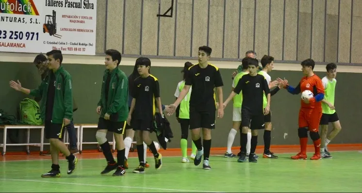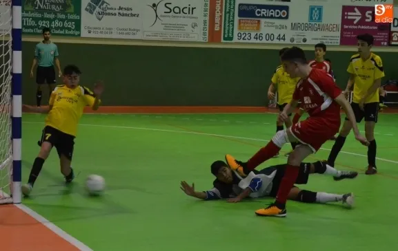 La galería incluye imágenes del partido del Juvenil B del Ciudad Rodrigo frente al Cristo Rey Barrio Vidal B, del encuentro de cadetes entre III Columnas y FS San José, y de varios de los duelos de Juegos Escolares disputados en la mañana del sábado en Co