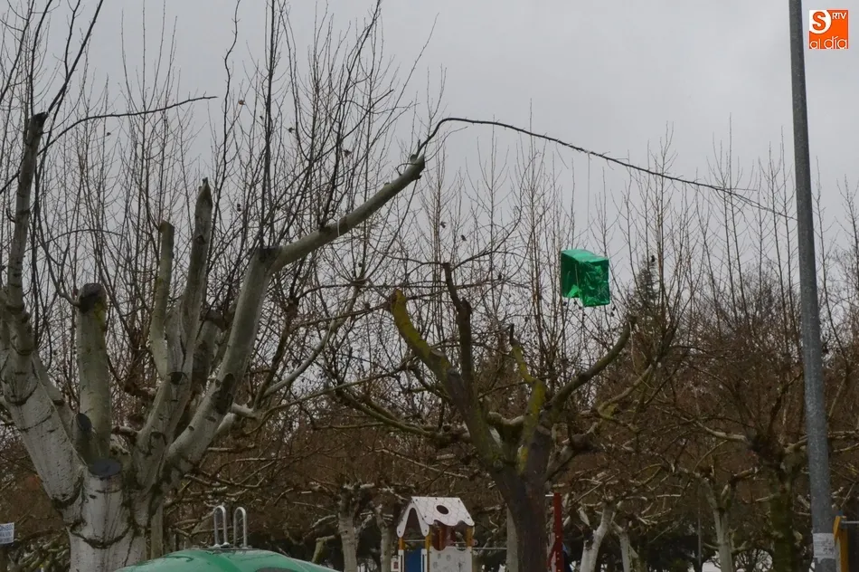 Concretamente, ese elemento que se puede ver en las imágenes era una caja de regalo instalada a modo de ornamentación navideña en uno de los árboles del Parque de La Glorieta que da a la calle Laguna. La caja quedó ahí tras la Navidad y ha ido superando semanas, incluido el Carnaval, hasta que en las últimas horas la rama en la que estaba colgada ha pasado a la historia.