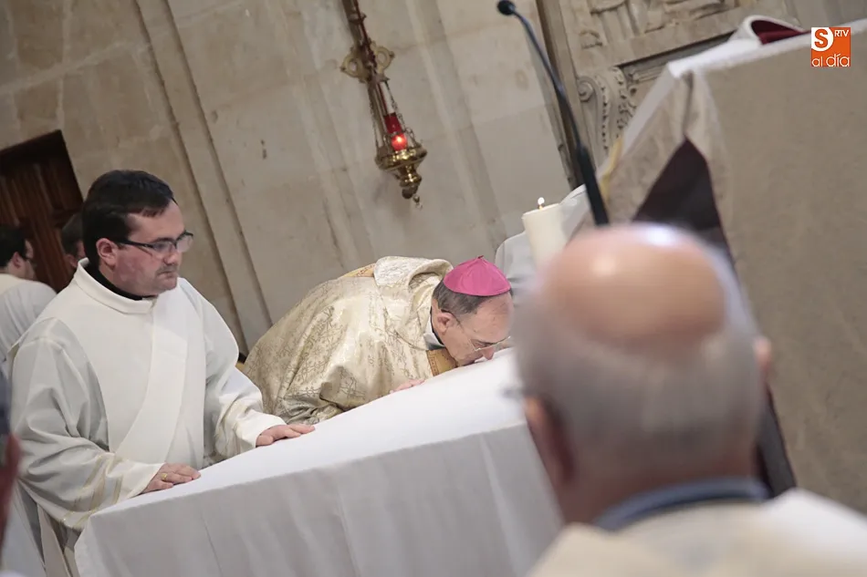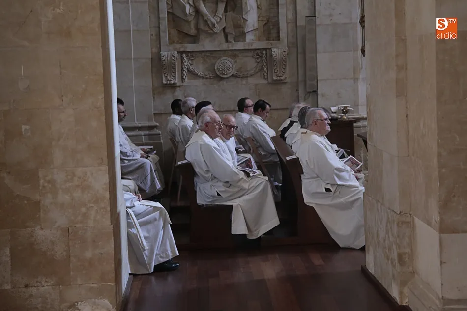 El obispo de Salamanca, Carlos López, ha presidido hoy el rito de eucaristía de admisión a las sagradas órdenes de Alfonso Hernández y Ciriaco García. La celebración ha tenido lugar esta tarde en la Capilla Mayor de la Casa de la Iglesia.