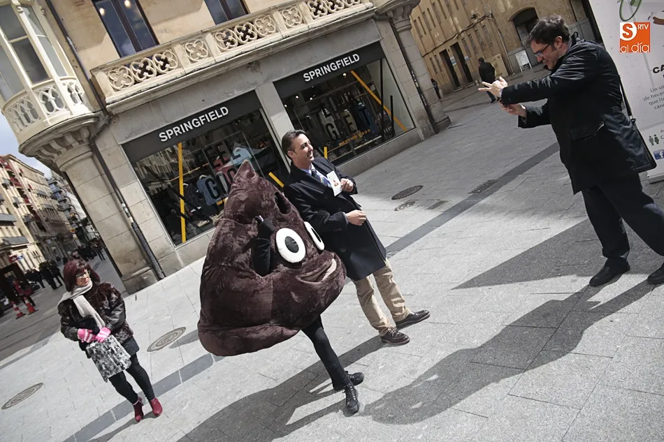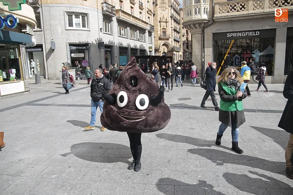 Con el fin de concienciar a la población sobre la importancia de hacerse el test de sangre en heces, ante el envío de las cartas de Sanidad, la Asociación Española Contra el Cáncer ha organizado un acto, este miércoles, en la plaza del Liceo. Allí estaba ?Salva, la mierda del Whatsapp?, una divertida mascota para reforzar el mensaje sobre las ventajas de la detección precoz frente al cáncer de colon.
