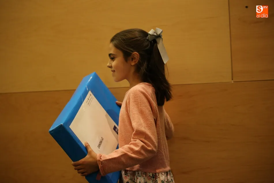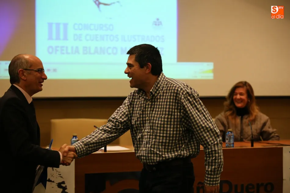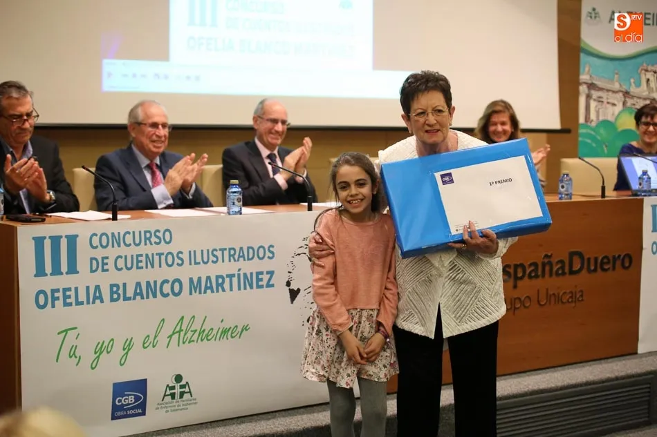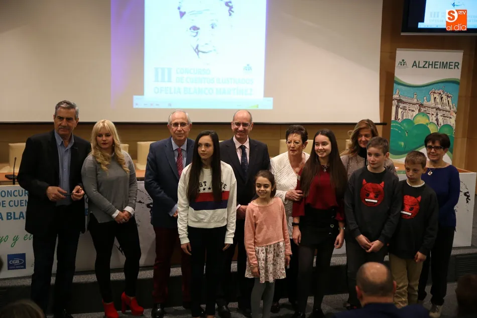 El Aula Cultural EspañaDuero, en la plaza de Los Bandos acogía esta tarde la entrega de premios del III Concurso de Cuentos Ilustrados de la Asociación de Familiares de Enfermos de Alzheimer de Salamanca Ofelia Blanco Martínez, organizado por CGB Informática, al que han concurrido casi quinientos escolares de toda Castilla y León de edades comprendidas entre los ocho y los quince años, superando, incluso, el éxito de las ediciones anteriores. El ganado se llevó un portátil y 200 euros, el segundo premio, un iPad y 100 euros, y el tercero con u smartphone y 20 euros.