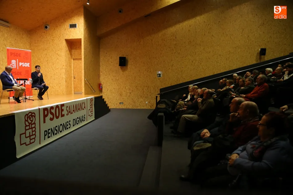 El salón de actos del Centro Municipal Integrado Julián Sánchez ?El Charro? acogió este jueves una charla sobre ?El futuro del sistema público de pensiones? a cargo de Joaquín Merchán Bermejo, vicepresidente 2º del Consejo General de Colegios Oficiales de Graduados Sociales de España y experto en la materia. La charla estuvo organizada por el PSOE de Salamanca.
