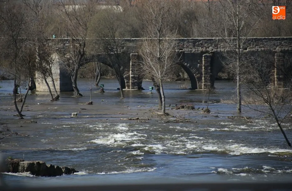 El fuerte caudal del Tormes rompe la pesquera del puente romano