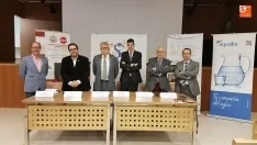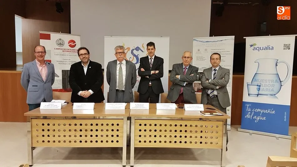 Manuel García, director del CIDTA de la USAL; Julio Cordero, director de la Oficina del VIII Centenario de la Universidad; José Antonio de la Fuente, representante del Ayuntamiento; Manuel Sánchez, jefe del Área de Programas Educativos de la de la Dirección Provincial de Educación; Javier Juárez, técnico del Servicio Territorial de Medioambiente; y Francisco Javier Rodríguez, gerente de FCC Aqualia han explicado los objetivos que se persiguen con este día centrado en los escolares.