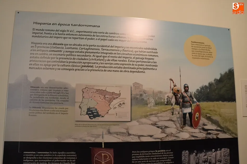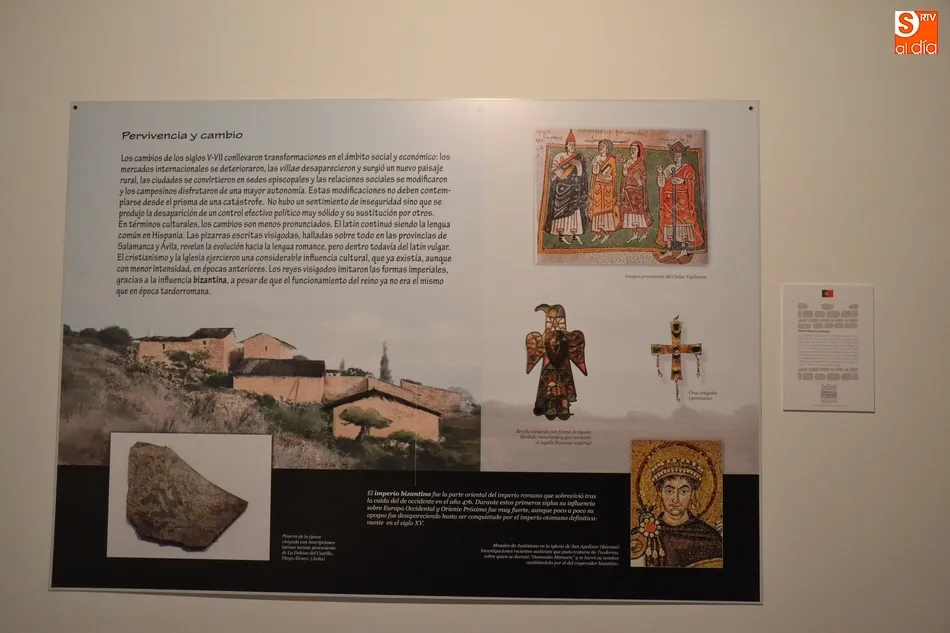 De este modo se ponen en valor las fortificaciones, que aparecieron en esa época, los poblados campesinos, y las pizarras, donde se recogen inscripciones que permiten remarcar la pervivencia de la cultura de lo escrito y de las transformaciones en la lengua. Precisamente, Iñaki Martín Viso considera como el elemento más destacado de la exposición las pizarras que se han colocado. Como otros elementos llamativos, se recrean una fragua y una tumba excavada en roca.