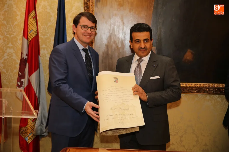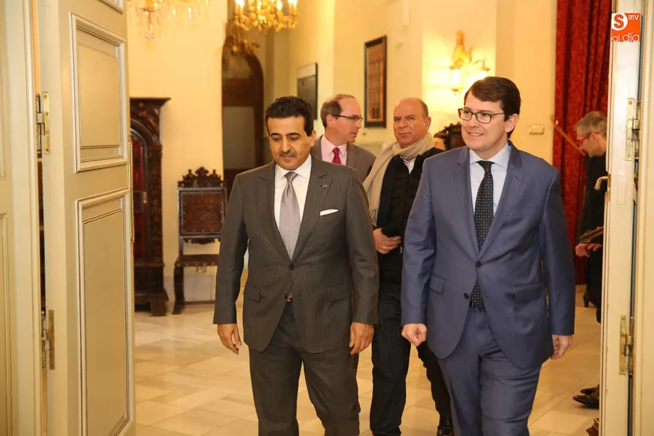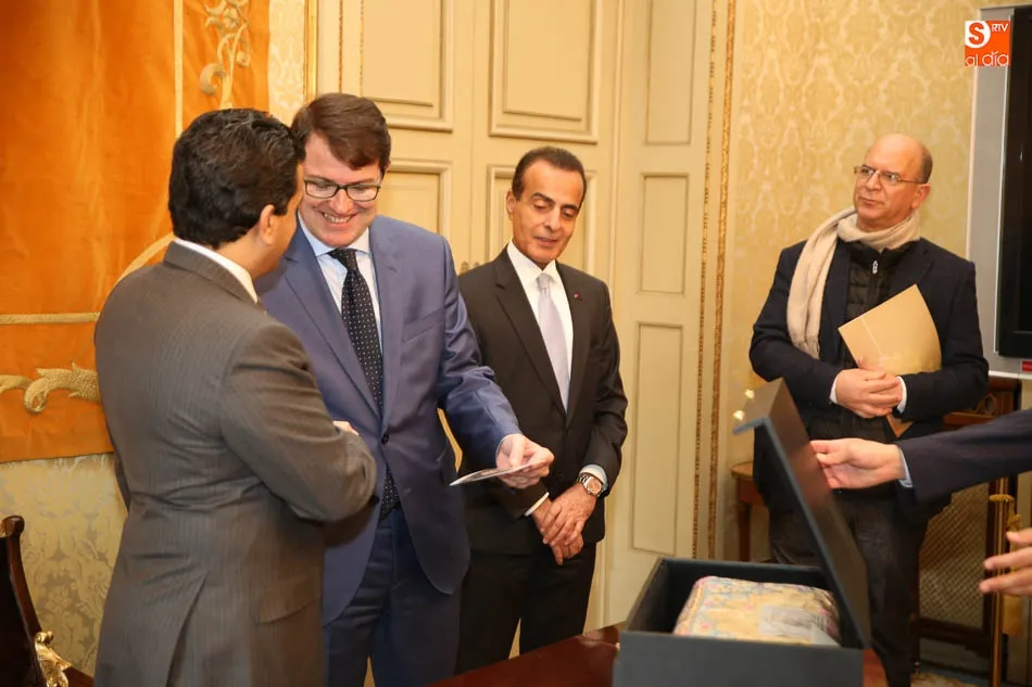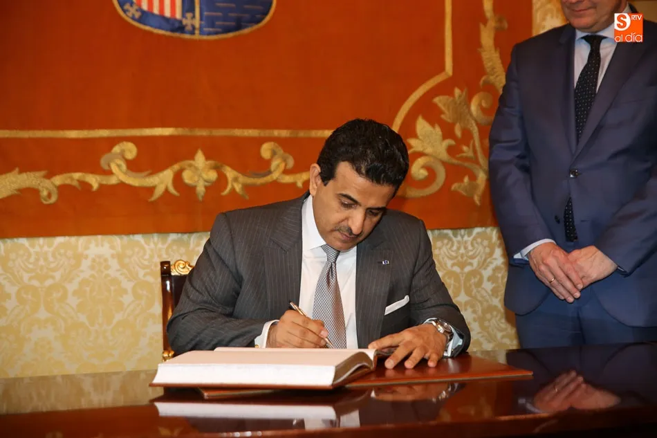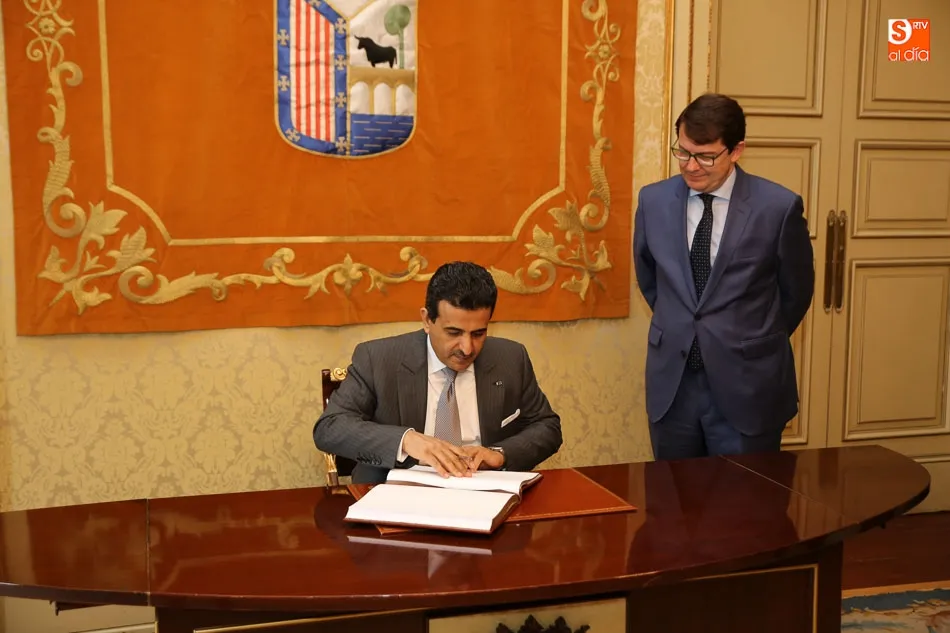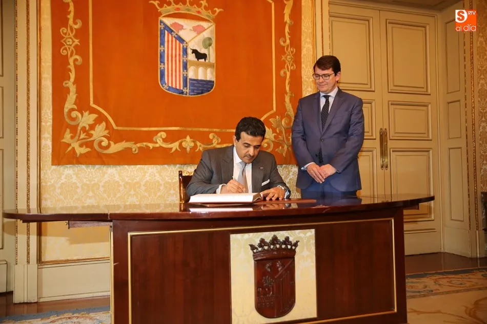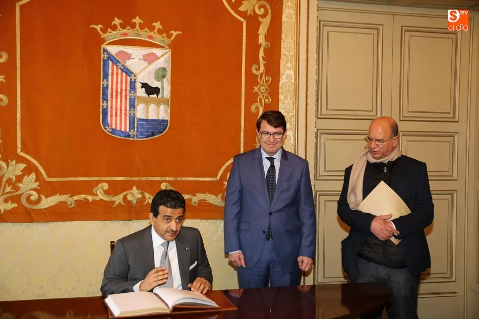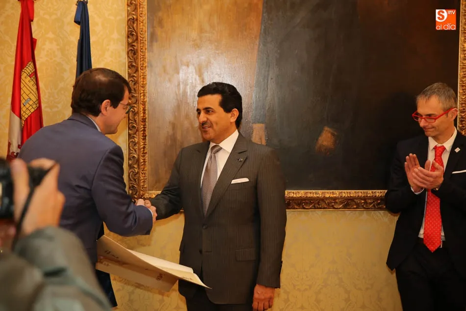 El alcalde de Salamanca, Alfonso Fernández Mañueco, ha entregado este viernes el título de Huésped Distinguido al fiscal general de Catar, Alí Ben Fetais Al Marri. El acto tenía lugar en el Salón de Recepciones del Ayuntamiento de Salamanca, donde ambos compartían una agradable charla sobre la ciudad y sus atractivos para los visitantes.