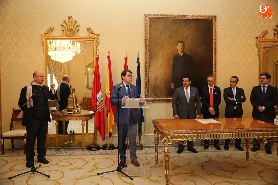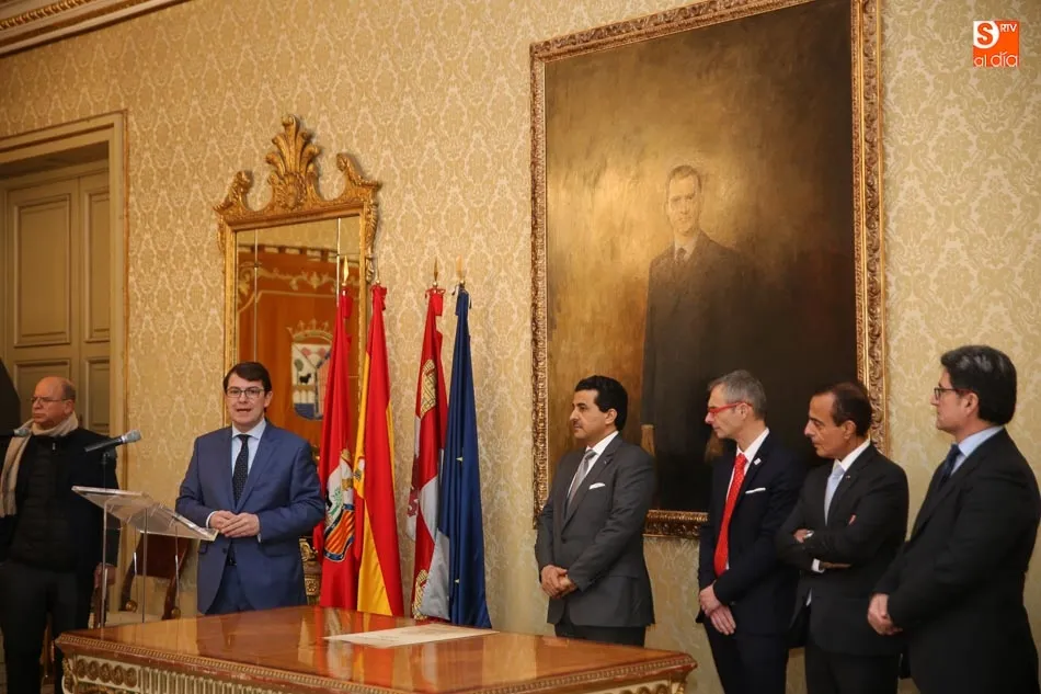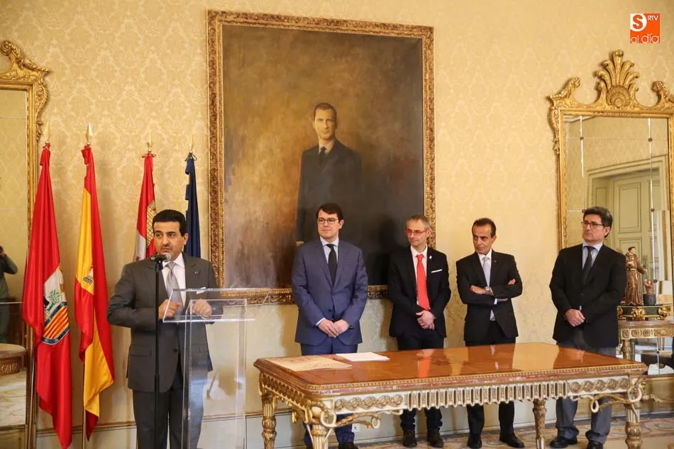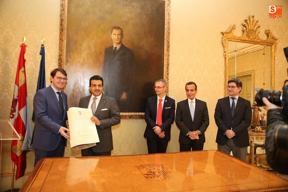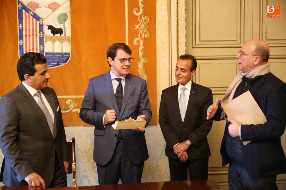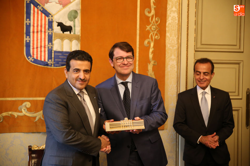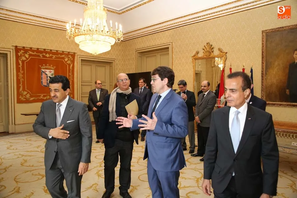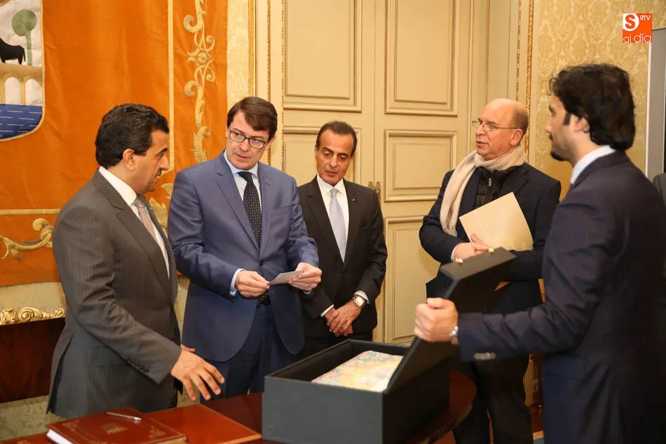 El alcalde de Salamanca, Alfonso Fernández Mañueco, ha entregado este viernes el título de Huésped Distinguido al fiscal general de Catar, Alí Ben Fetais Al Marri. El acto tenía lugar en el Salón de Recepciones del Ayuntamiento de Salamanca, donde ambos compartían una agradable charla sobre la ciudad y sus atractivos para los visitantes.