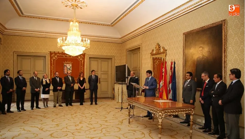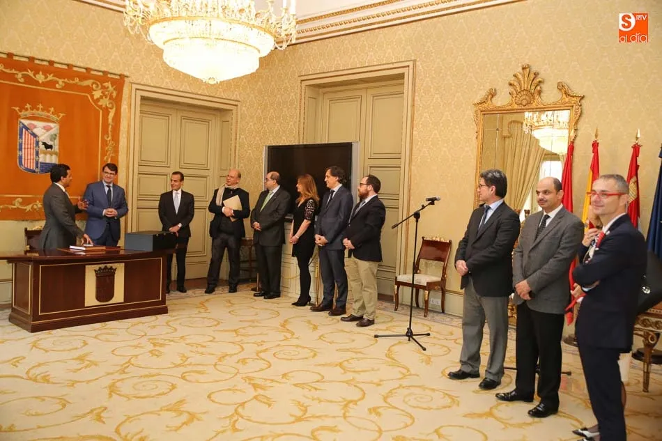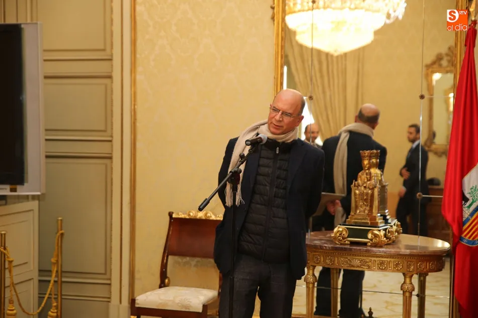 El alcalde de Salamanca, Alfonso Fernández Mañueco, ha entregado el título al homenajeado en el Salón de Recepciones del Ayuntamiento