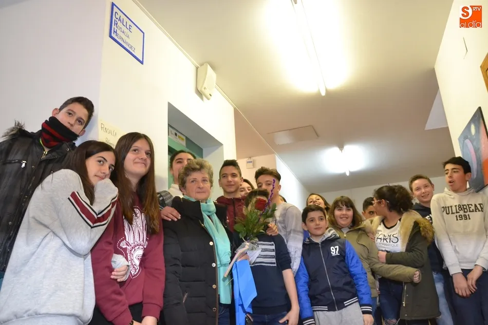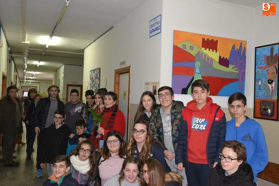 El IES Fray Diego bautiza sus pasillos con los nombres de mirobrigenses y comarcanas ilustres   | Imagen 1El homenaje de la mañana del viernes fue doble. Por un lado, se organizaron sendos encuentros en el salón de actos del IES con familiares o amigos de las homenajeadas (quiénes explicaron datos de sus biografías) -o en su defecto, con historiadores-, y por otro, se descubrieron en los pasillos del centro una serie de placas con los nombres de estas mujeres, a modo de ?calles?.