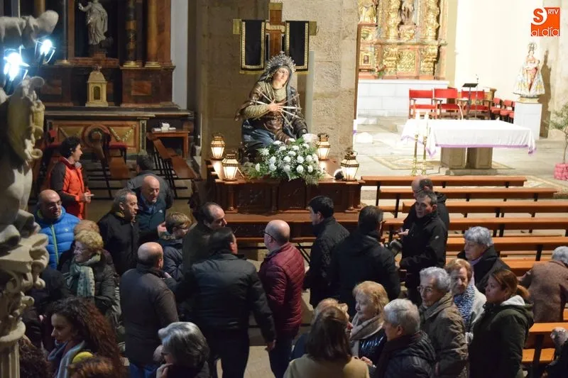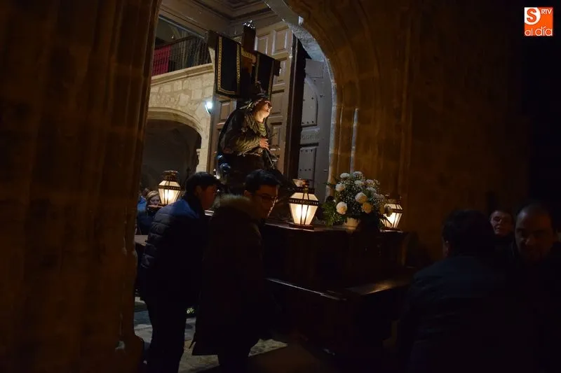 De una manera más rápida y sin realizar pausas, la imagen de la Virgen de los Dolores procesionó desde la Iglesia de San Pedro a la de San Juan, dándose por finalizada la procesión y dejando paso al pregón de Semana Santa y posterior concierto de la Banda de Música de Alba de Tormes.