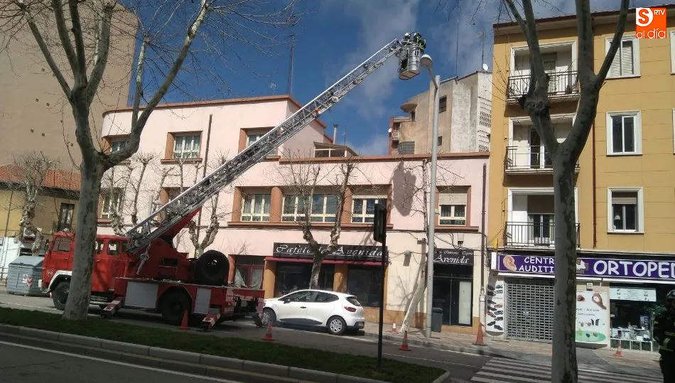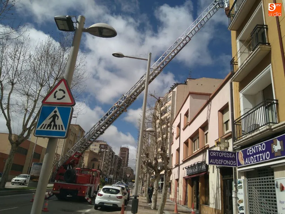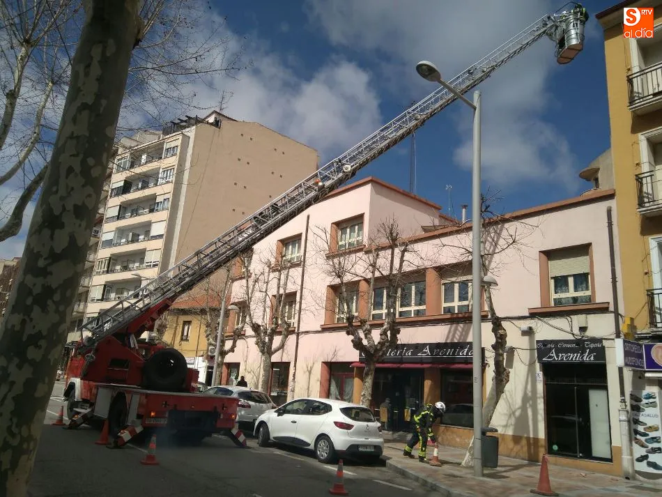 Los Bomberos del Ayuntamiento de Salamanca han tenido que realizar una intervención este sábado, con consecuencia del desprendimiento de tejas de un edificio, situado en el número 38 de la avenida de Portugal.