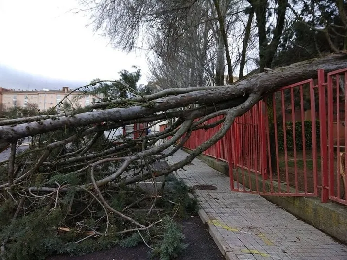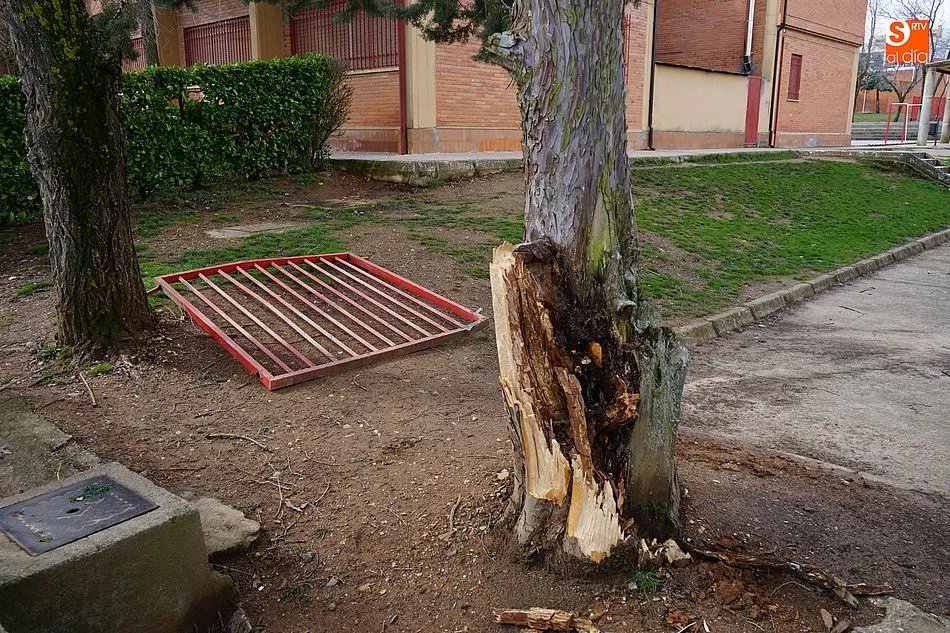 La tormenta derriba parte de uno de los árboles del colegio Miguel de Cervantes