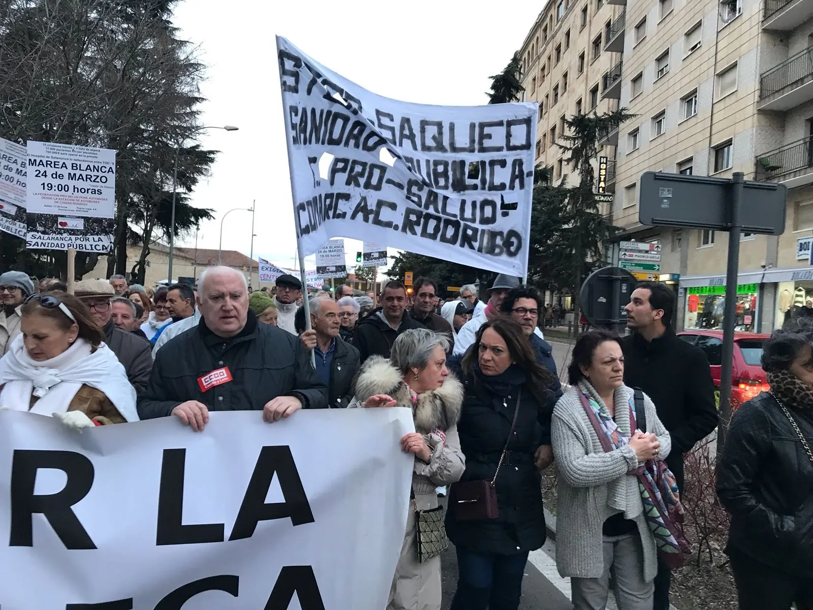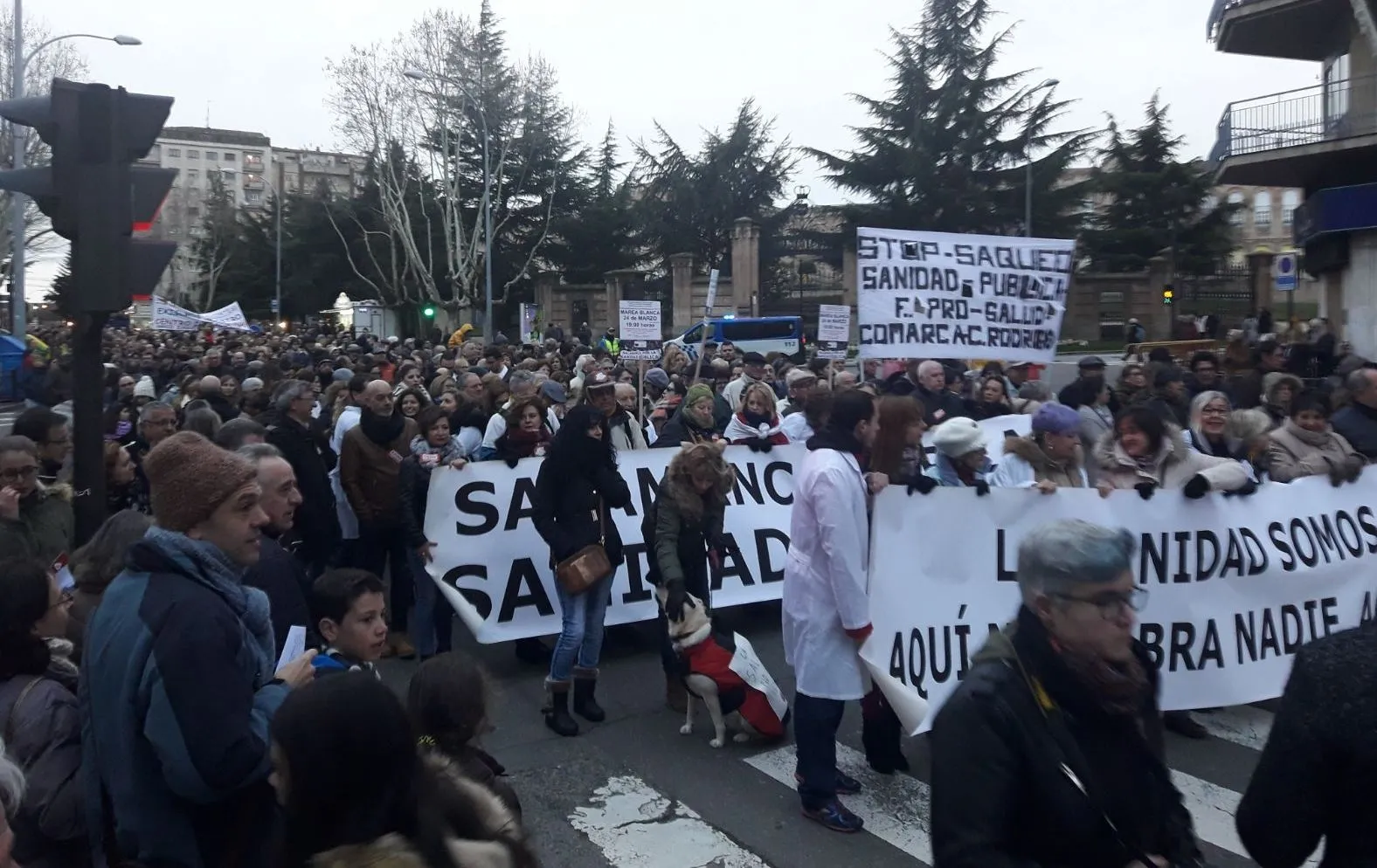 En esta Marea Blanca por las calles salmantinas tomaron parte integrantes de la Federación ProSalud ?que fletaron autobuses desde Ciudad Rodrigo para facilitar la asistencia-, así como responsables a nivel local de PSOE e IU, según ellos mismos dieron cuenta a través de sus redes sociales.