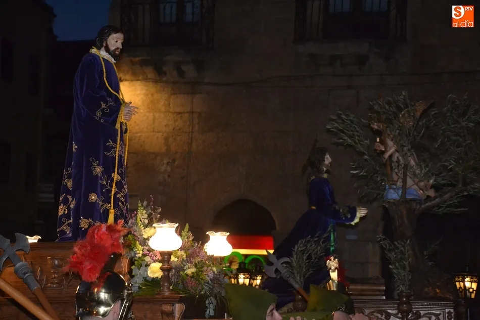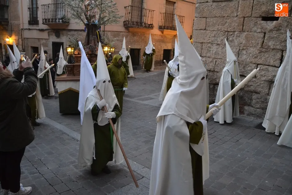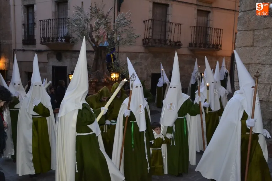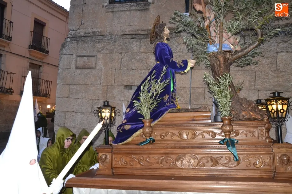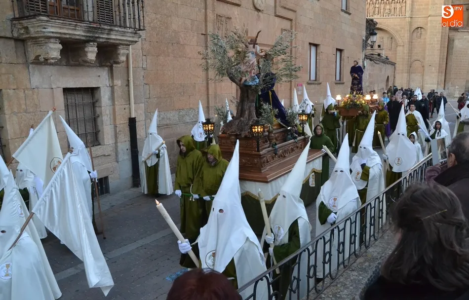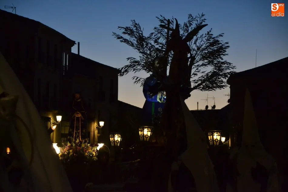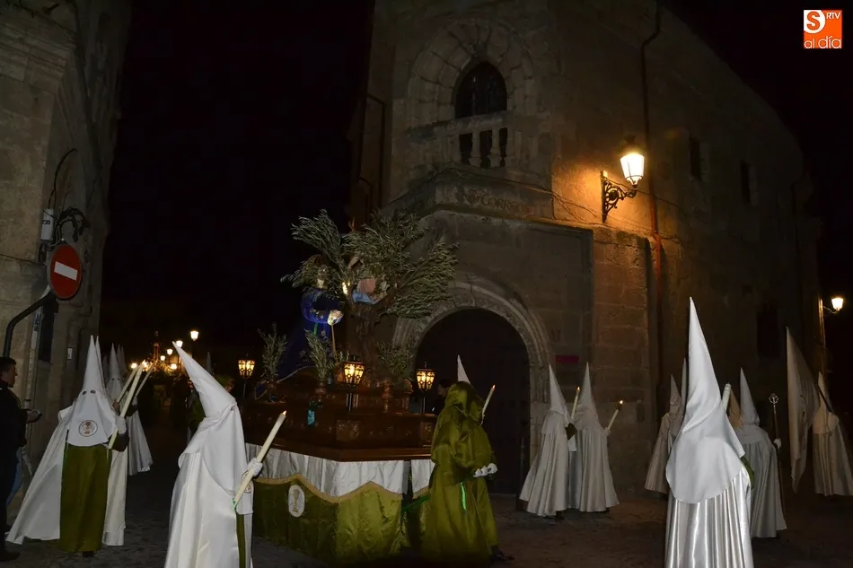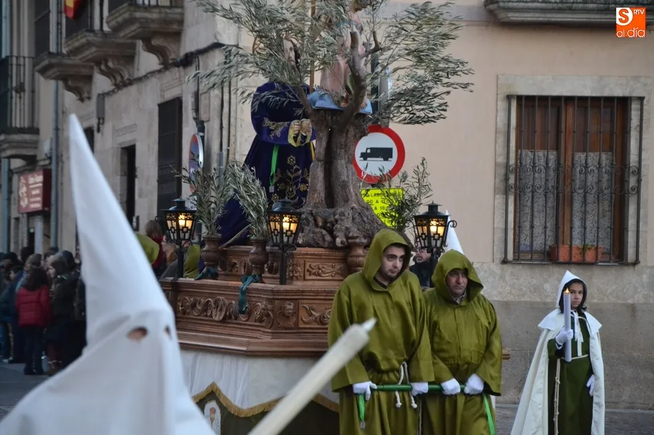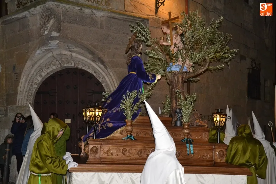 La jornada del Domingo de Ramos se completó en Ciudad Rodrigo con la procesión de la Oración del Huerto, en la cual se enlazaron el día y la noche, producto del cambio horario acaecido en la madrugada del sábado al domingo, en el cual hubo que adelantar los relojes una hora.