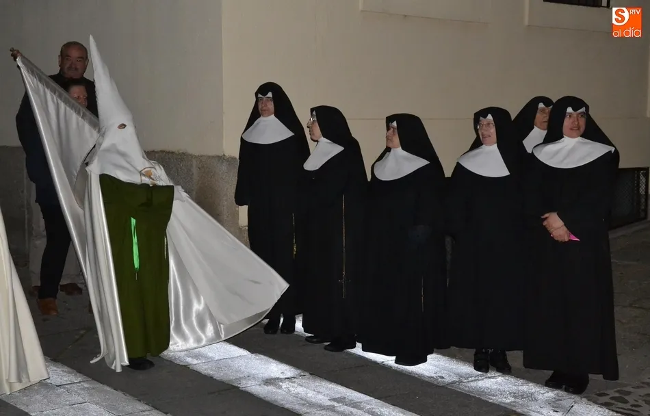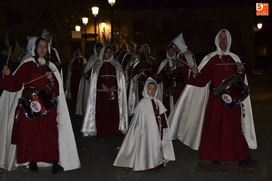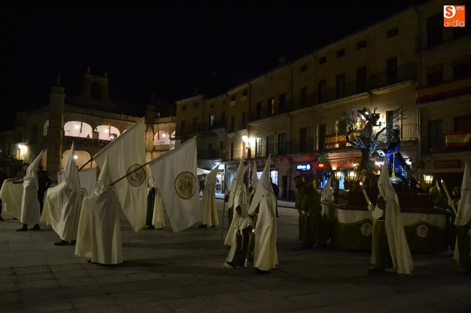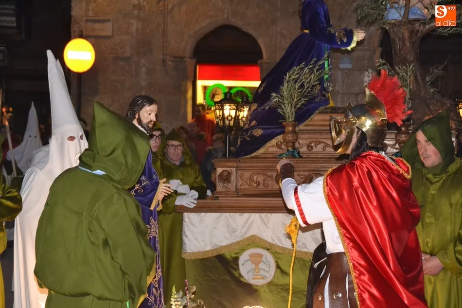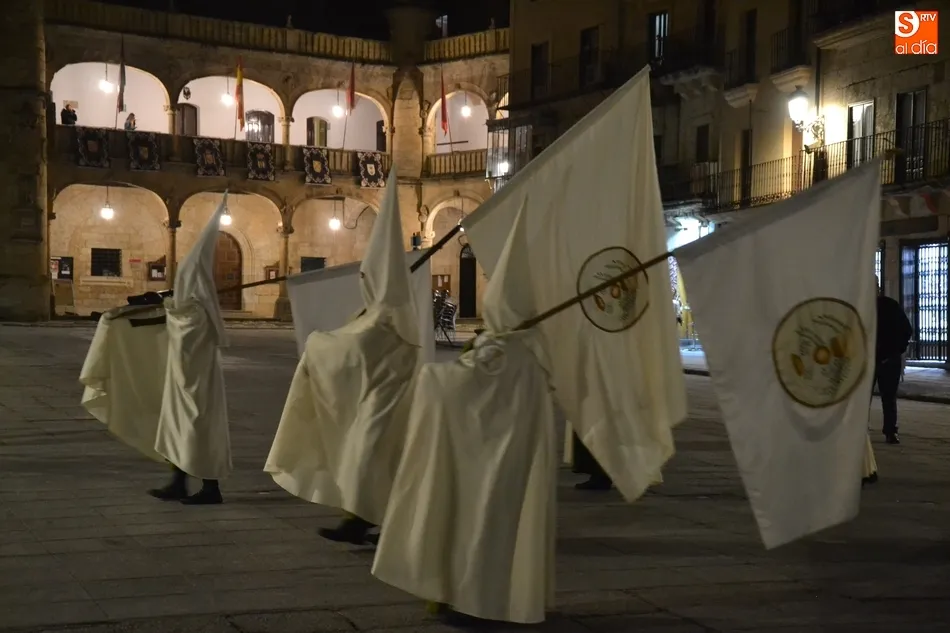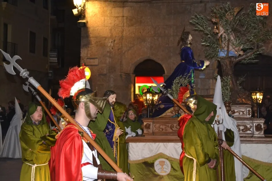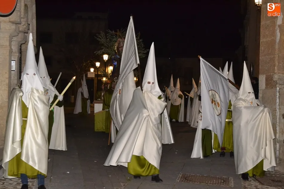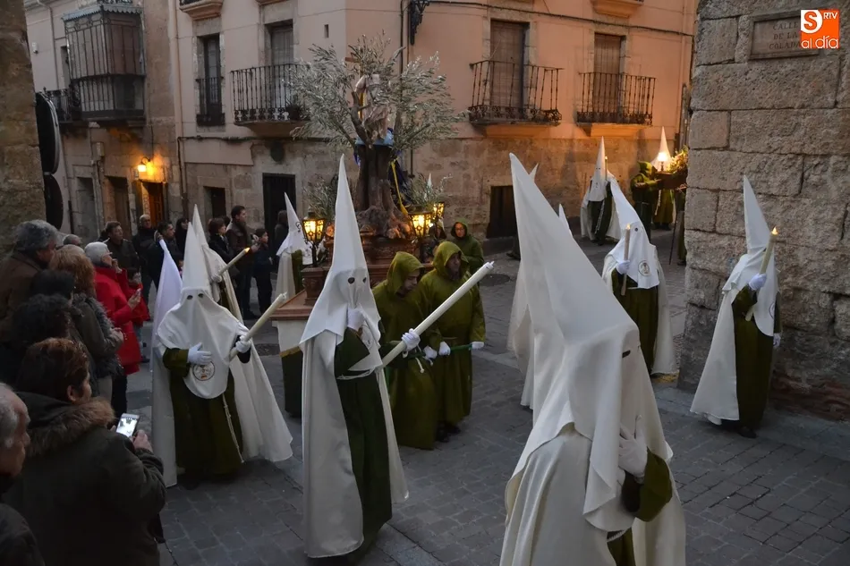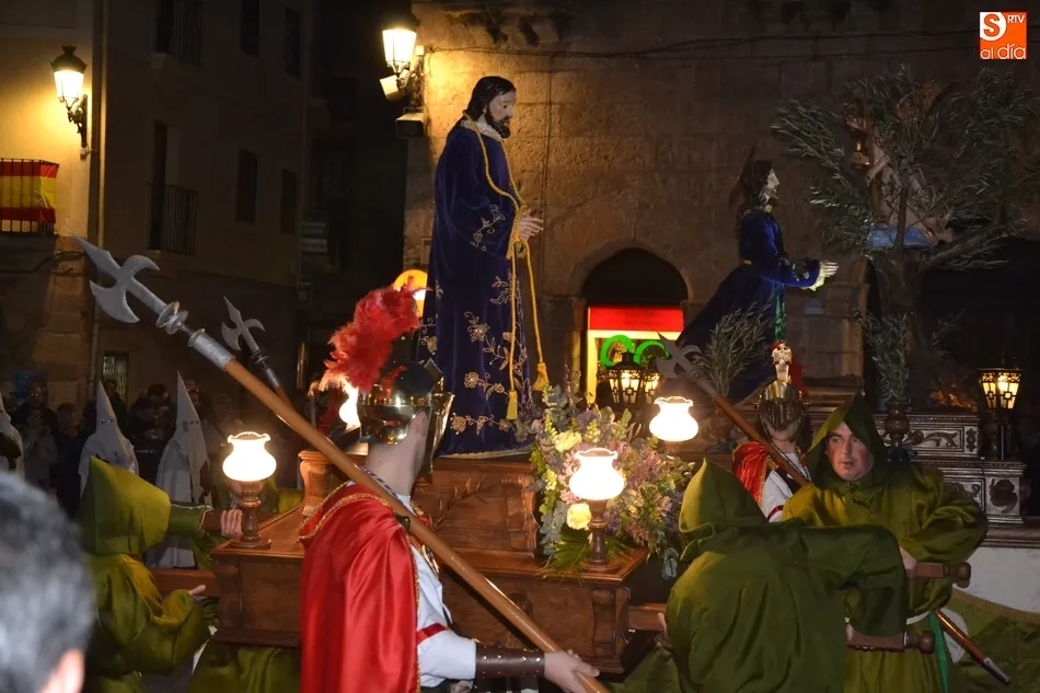 La jornada del Domingo de Ramos se completó en Ciudad Rodrigo con la procesión de la Oración del Huerto, en la cual se enlazaron el día y la noche, producto del cambio horario acaecido en la madrugada del sábado al domingo, en el cual hubo que adelantar los relojes una hora.