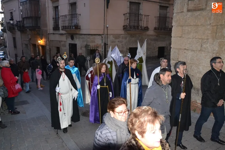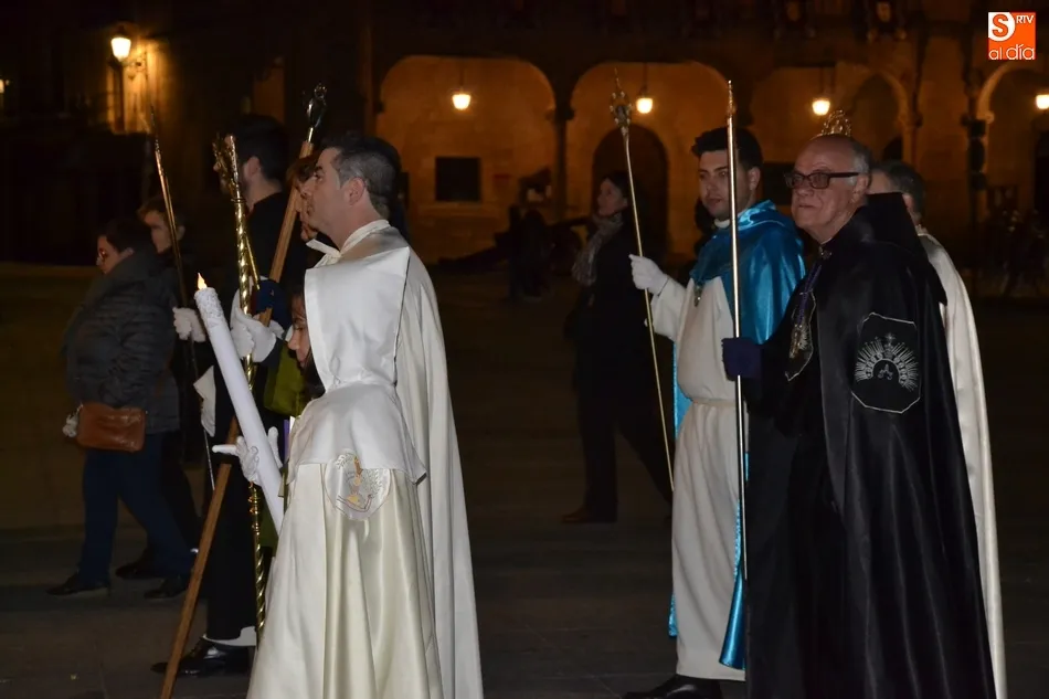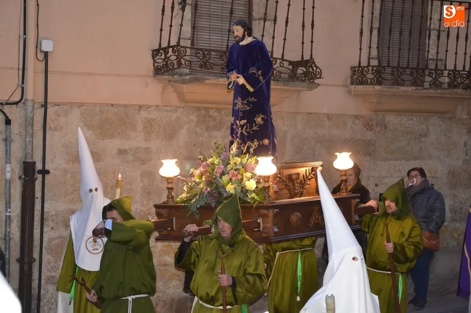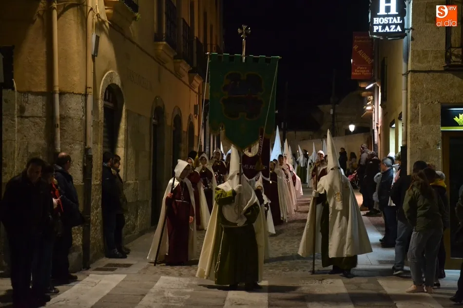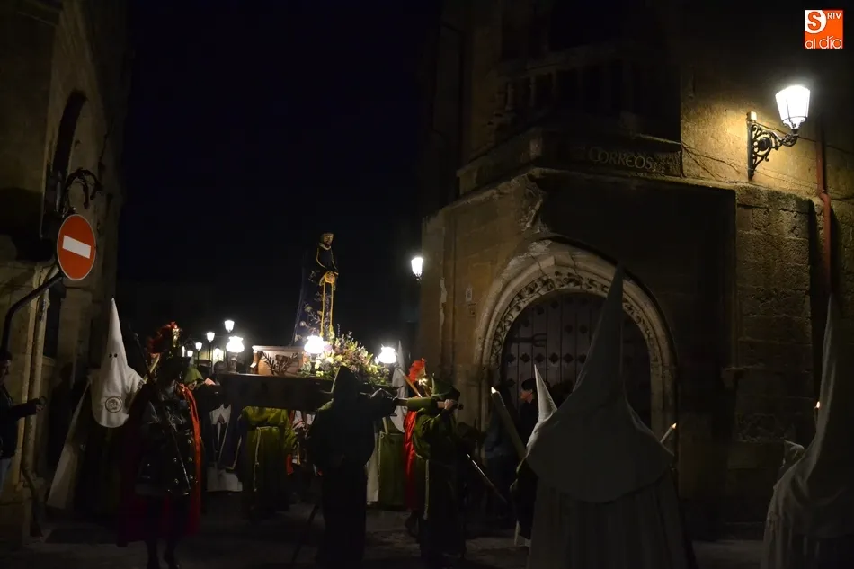 La procesión abandonó la Plaza por la Rúa del Sol, tomando posteriormente la calle Gigantes, Campo del Pozo, Plazuela Cristóbal de Castillejo, Colegios, Velayos, y Sánchez Arjona para cruzar de nuevo la Plaza Mayor y coger la calle Julián Sánchez en dirección a la Iglesia de Cerralbo. En la parte final de la comitiva desfilaron representantes del resto de Cofradías de la Semana Santa Mirobrigense, y de la Cofradía de la Oración del Huerto de Salamanca, con quién está hermanada la Cofradía mirobrigense.