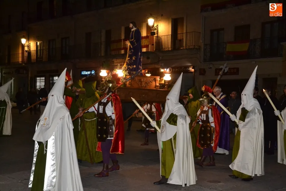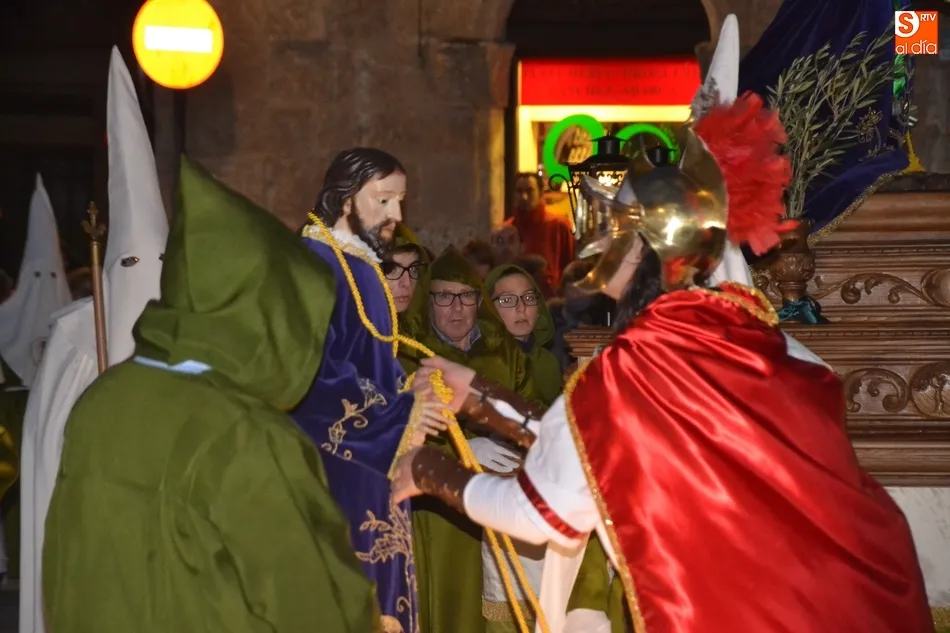 Unos metros más atrás procesionó a hombros el Jesús Cautivo incorporado hace tres Semanas Santas, con el cual se volvió a repetir en la Plaza Mayor el ritual del prendimiento. Como el año pasado, para ese momento se contó con romanos de la Cofradía de Jesús Nazareno, doblando su número (de 2 a 4). Tras simbolizar el prendimiento, los romanos pasaron a escoltar la imagen ?que casi se va al suelo al cogerla de nuevo a hombros- el resto de la procesión.