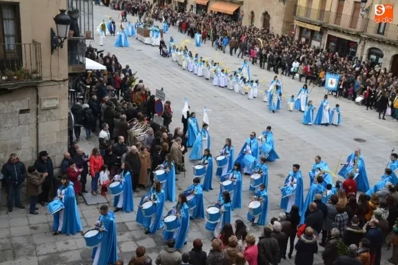 El desfile se puso en marcha con puntualidad a las puertas de la Parroquia de Santa Marina donde se habían ido congregando los niños que procesionaron, la mayoría de ellos bastante pequeños. Como es tradición, esos niños fueron ?escoltados? en todo momento por sus familiares en su discurrir por el Puente Mayor, la calle Nogales Delicado y la calle Colada.