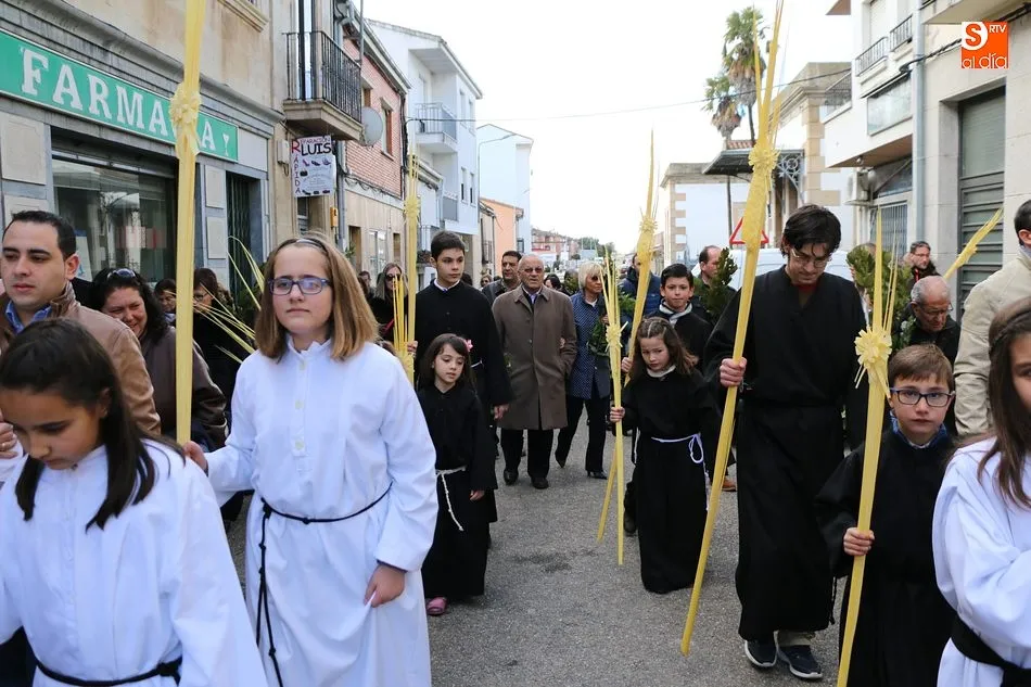 El trabajo realizado por la Cofradía San Nicolás de Bari en Vitigudino, para potenciar la Semana Santa, continúa dando sus frutos. Si hace cinco años invitaba a los niños a participar con palmas blancas, recuperando la tradición del Domingo de Ramos, la procesión que partía de la plaza del Convento contaba este año con un número mayor de fieles dispuestos a subir la calle Santa Ana camino a la iglesia para celebrar la eucaristía.