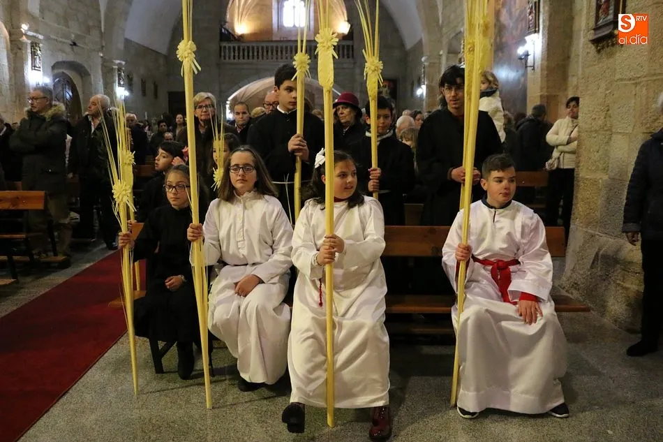 Los actos comenzaban con el reparto de ramos de laurel en la plaza del Convento, momento al que seguiría la llegada de los miembros de la Cofradía, encargados de presidir la bendición de ramos, que en esta ocasión ofició el sacerdote Francisco Fraile. Concluida la bendición con las oraciones de rigor, comenzaba la procesión camino de la iglesia, dando así el comienzo oficial a los actos religiosos que se desarrollarán a lo largo de los próximos días con motivo de la Semana Santa.