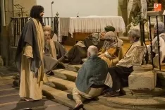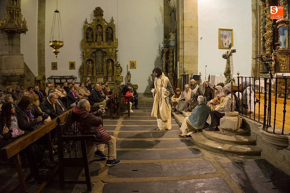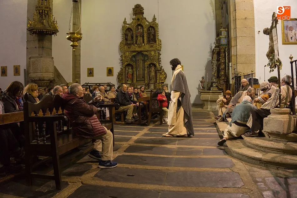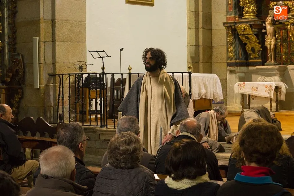 La iglesia de Nuestra Señora de las Nieves de Mogarraz ha acogido esta tarde la representación de ?La Pasión? a cargo de Cateja Teatro. Se trata de la tradicional puesta en escena de la primera parte de la conocida obra que desde hace casi 40 años se ofrece en La Alberca.