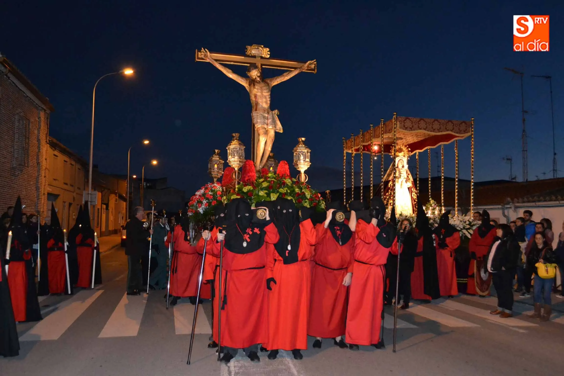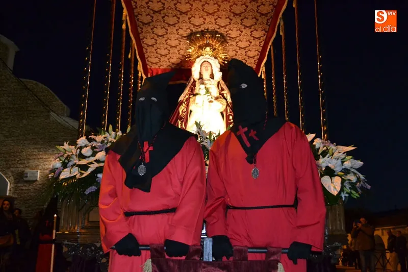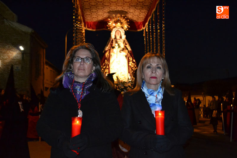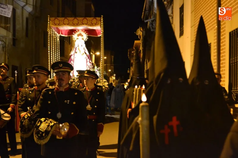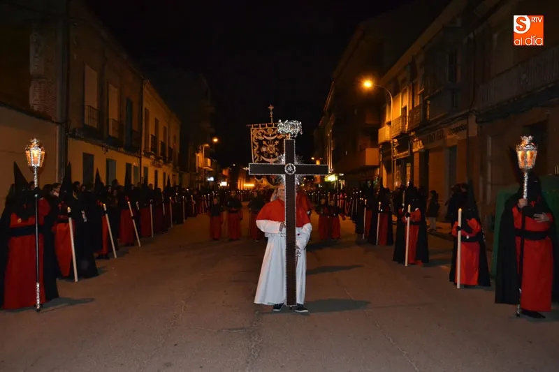 En silencio, ese que parece bañar los instantes previos a la llegada de la magistral noche, era el perfecto compañero del Santo Cristo del Humilladero y Nuestra Señora de las Lágrimas, en su peregrinar este Martes Santo, inaugurando además los desfiles procesionales de esta intensa semana en Peñaranda.