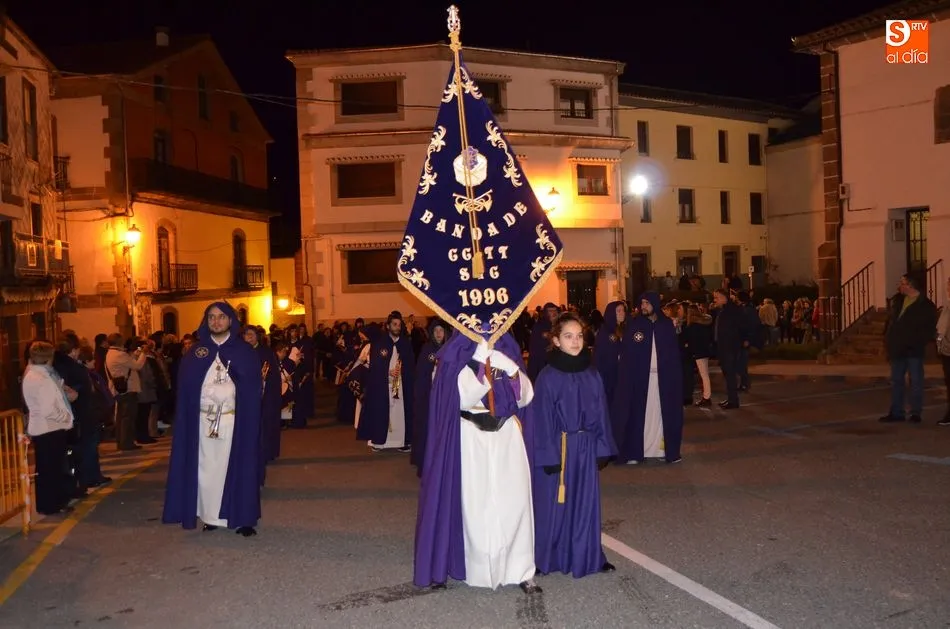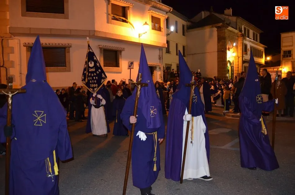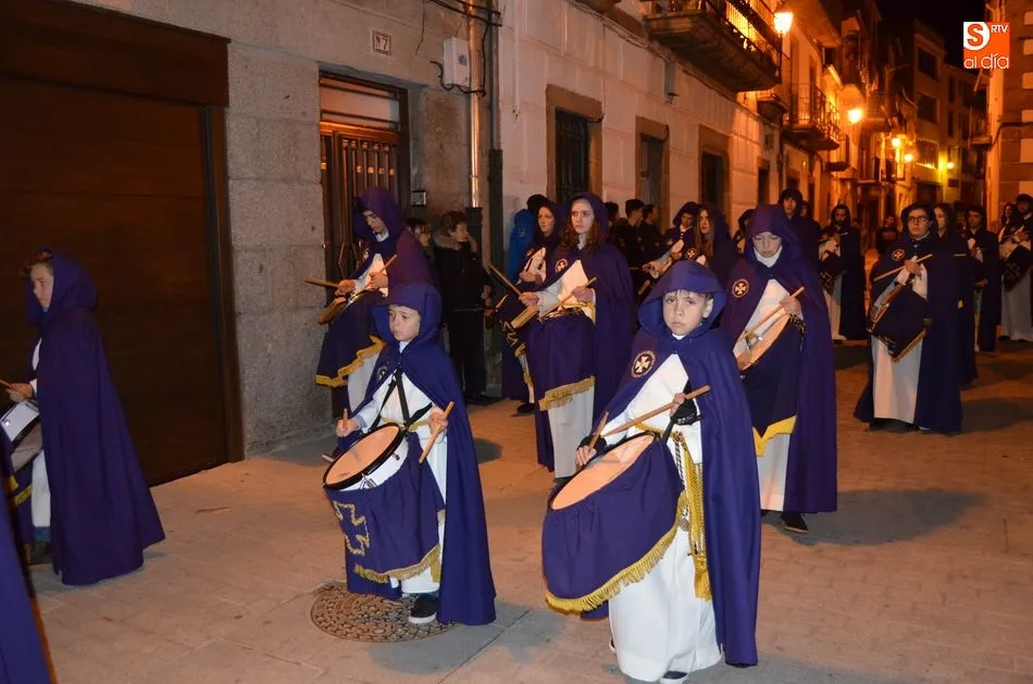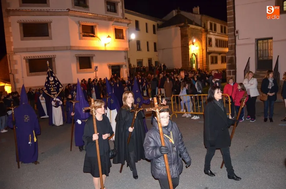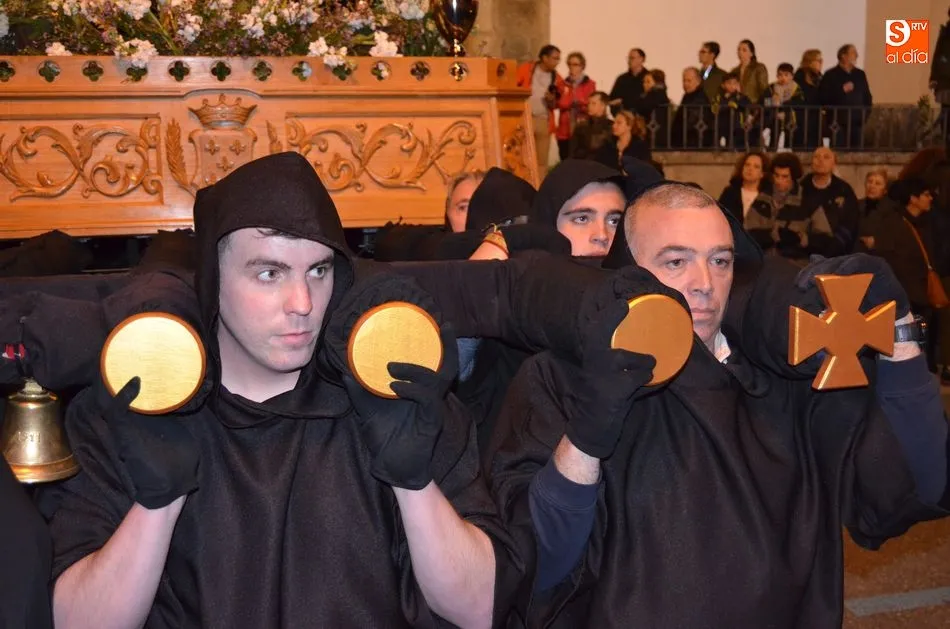 La Soledad sale desde la iglesia de San Juan entre el respeto y la devoción de los fieles y acompañada de los cofrades y la banda de la Santa Vera Cruz, para tomar la calle Mansilla en dirección a la plaza de La Piedad y recorrer la Calle Mayor. Durante el camino el sonido de los tambores resuena en la noche primaveral y la comitiva se sume en el recogimiento y el sosiego que impone la elegante imagen de la Virgen.