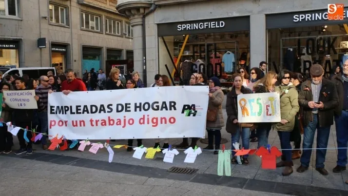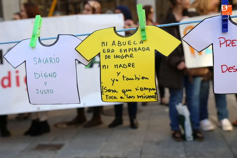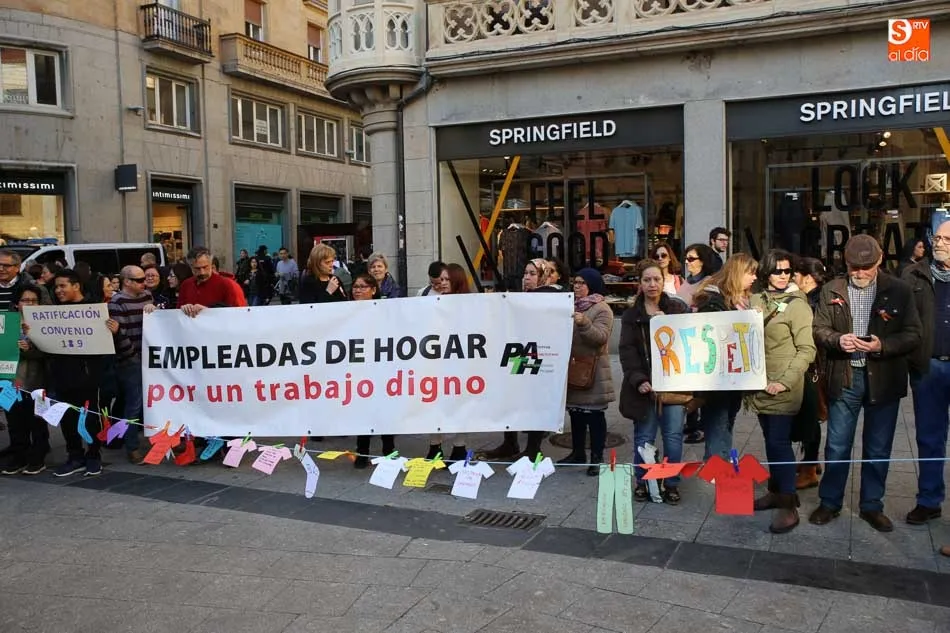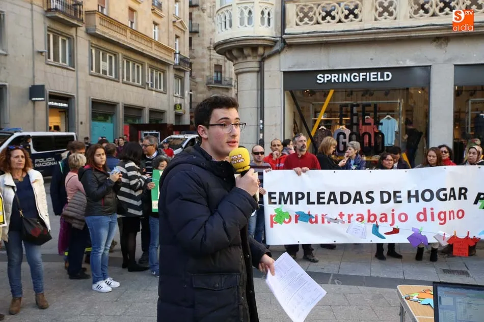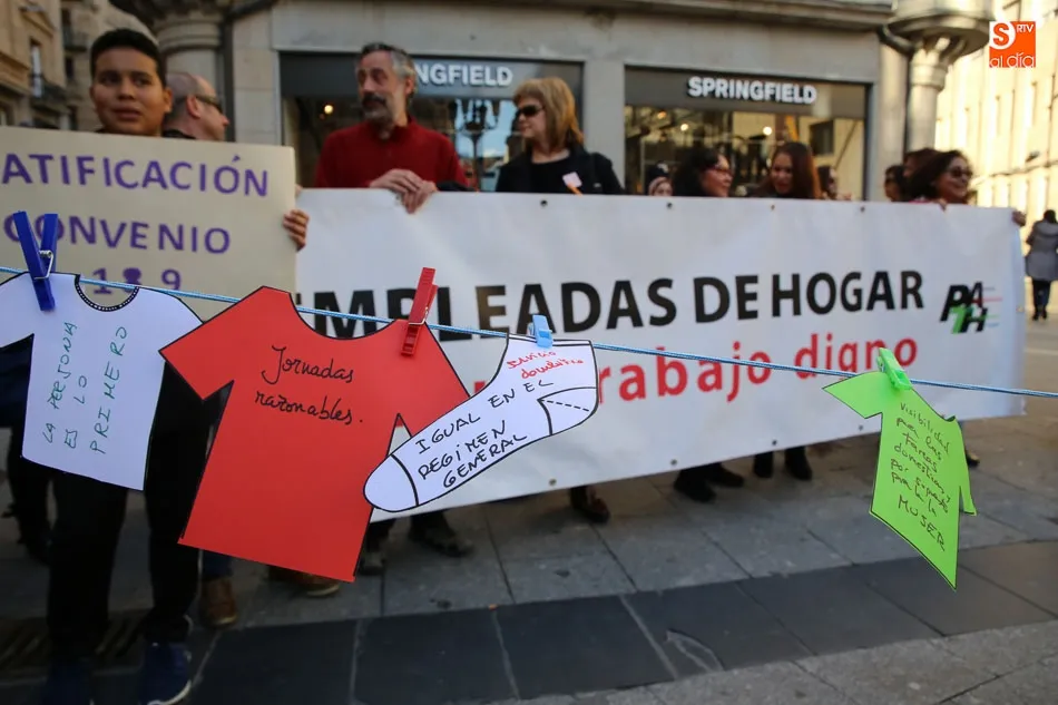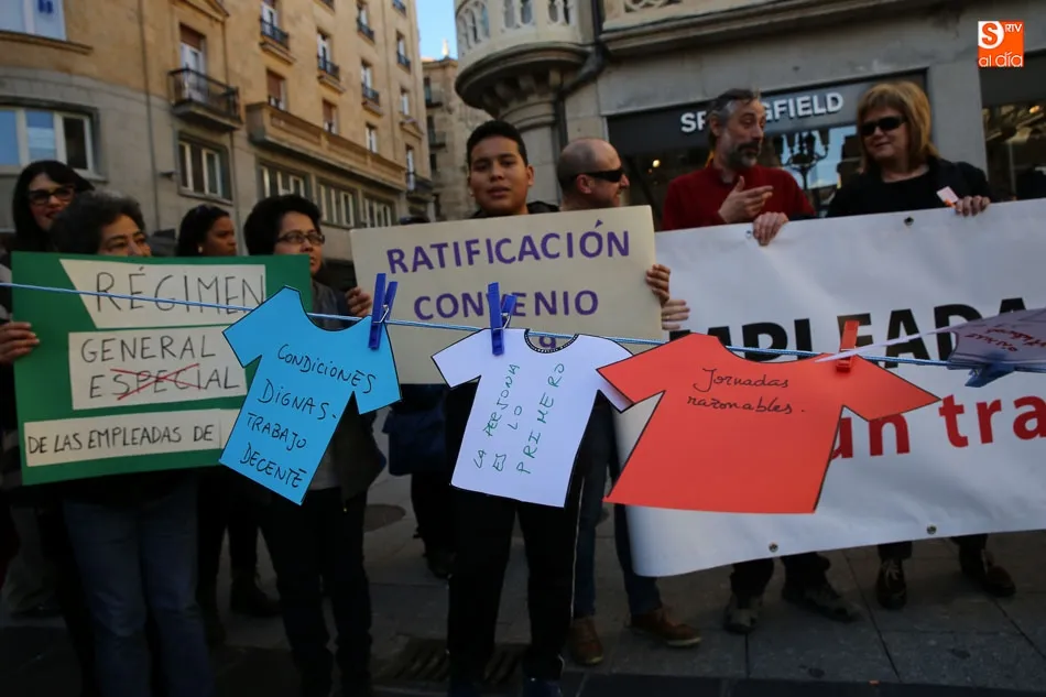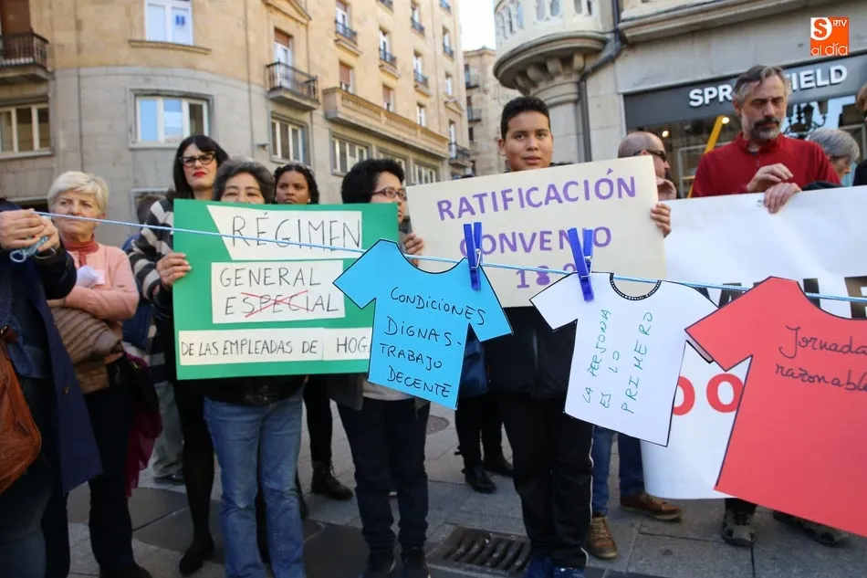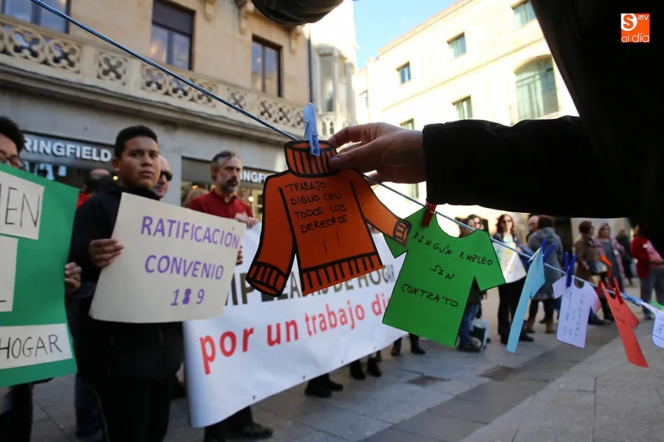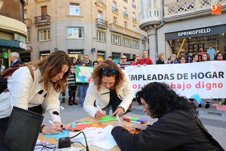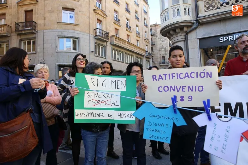 La Plaza del Liceo acogió hoy una concentración de empleadas de hogar, con motivo del día internacional del Trabajo Doméstico el próximo 30 de marzo. La jornada fue organizada desde la Mesa de Empleadas de Hogar, perteneciente a la Plataforma Salmantina de Entidades por el Empleo, con este evento se pretende la reivindicación de ?la aplicación del Convenio 189 de la Organización Internacional del Trabajo (OIT) sobre las trabajadoras y los trabajadores domésticos y de reconocimiento a la importante labor que realizan?.