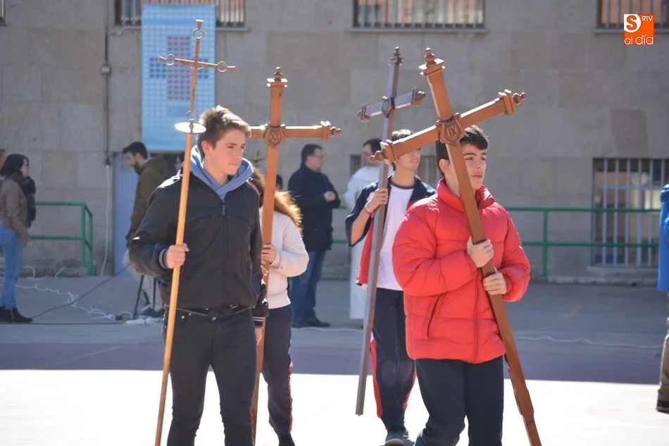 Este martes, 27 de marzo, el Colegio Padres Trinitarios ha celebrado el Vía Crucis en el patio del centro, actividad en la que han participado todos los alumnos.
